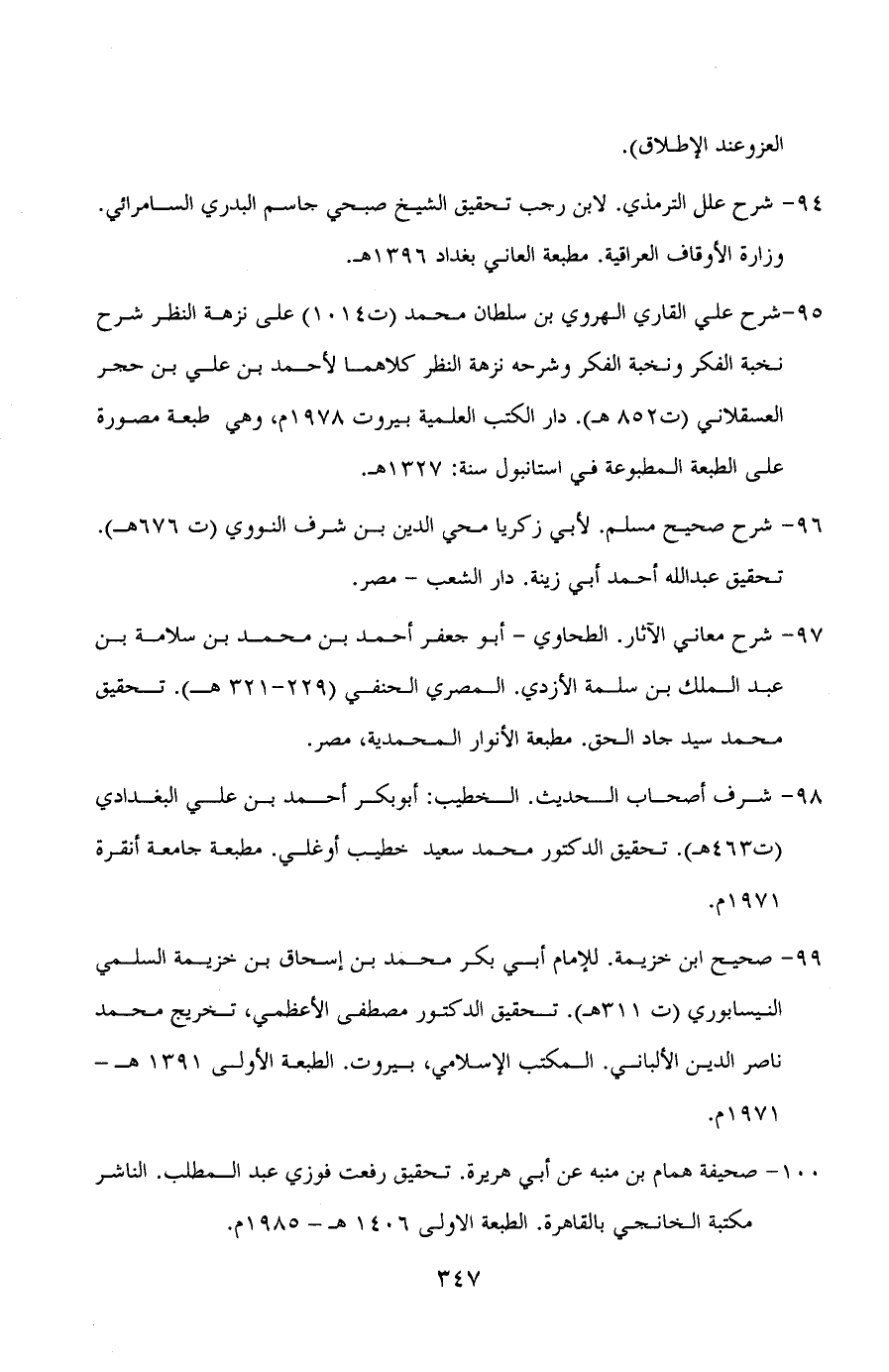 95-شرح علي القاري الهروي بن سلطان محمد (ت 1014) على نزهة النظر شرح نخبة الفكر ونخبة الفكر وشرحه نزهة النظر كلاهما لاحمد بن علي بن حجر العسقلاني (ت 852 هـ)