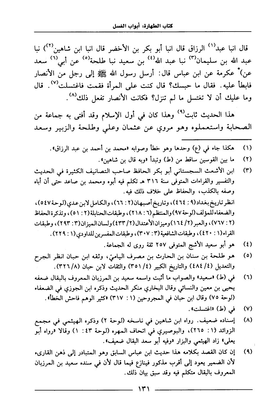 قَالَ: أَنْبَأَ عَبْدُ الرَّزَّاقِ، قَالَ: أَنْبَأَ أَبُو بَكْرِ بْنِ الْأَخْضَرِ، قَالَ: أَنْبَأَ ابْنُ شَاهِينَ، نَبَا عَبْدُ اللَّهِ بْنُ سُلَيْمَانَ، نَبَا عَبْدُ اللَّهِ بْنُ سَعِيدٍ، نَبَا طَلْحَةُ، عَنْ أَبِي سَعْدٍ، عَنْ عِكْرِمَةَ، عَنِ ابْنِ عَبَّاسٍ، قَالَ: أَرْسَلَ رَسُولُ اللَّهِ صَلَّى اللَّهُ عَلَيْهِ وَسَلَّمَ إِلَى رَجُلٍ مِنَ الْأَنْصَارِ، فَأَبْطَأَ عَلَيْهِ.