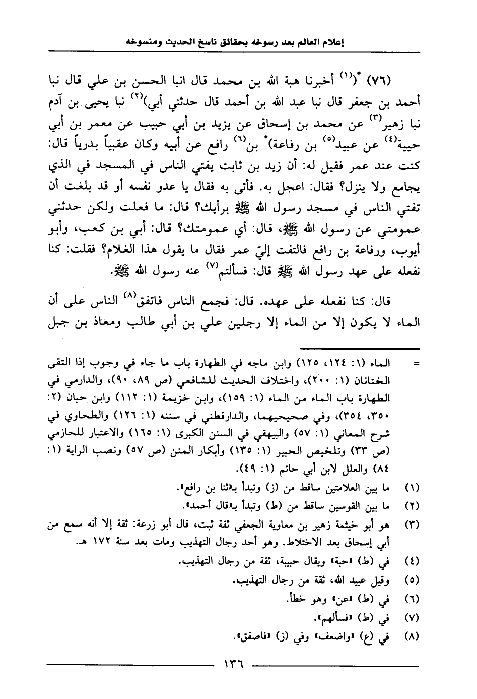 كتاب إعلام العالم بعد رسوخه بناسخ الحديث ومنسوخه