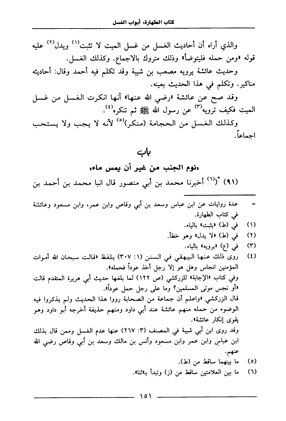 وَقَدْ صَحَّ عَنْ عَائِشَةَ رَضِيَ اللَّهُ عَنْهَا أَنَّهَا أَنْكَرَتِ الْغُسْلَ مِنْ غُسْلِ الْمَيِّتِ، فَكَيْفَ تَرْوِيهِ عَنْ رَسُولِ اللَّهِ صَلَّى اللَّهُ عَلَيْهِ وَسَلَّمَ، ثُمَّ تَنْكُرَهُ.