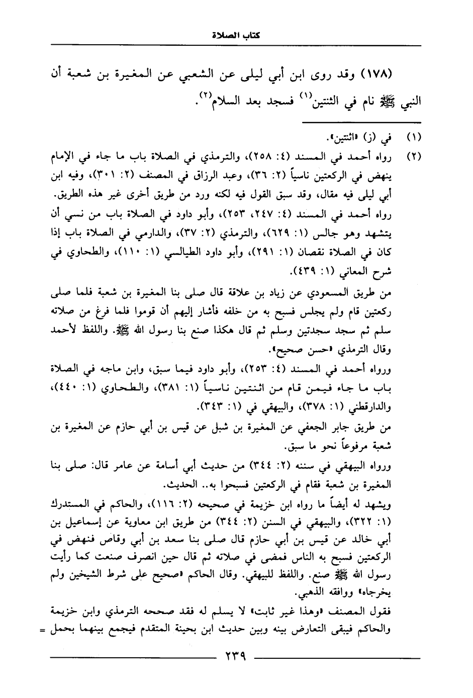 178 - وَقَدْ رَوَى ابْنُ أَبِي لَيْلَى، عَنِ الشَّعْبِيُّ، عَنِ الْمُغِيرَةَ بْنِ شُعْبَةَ، أَنّ النَّبِيَّ صَلَّى اللَّهُ عَلَيْهِ وَسَلَّمَ: «نَامَ فِي الثَّنَتَيْنِ فَسَجَدَ بَعْدَ السَّلَامِ» .