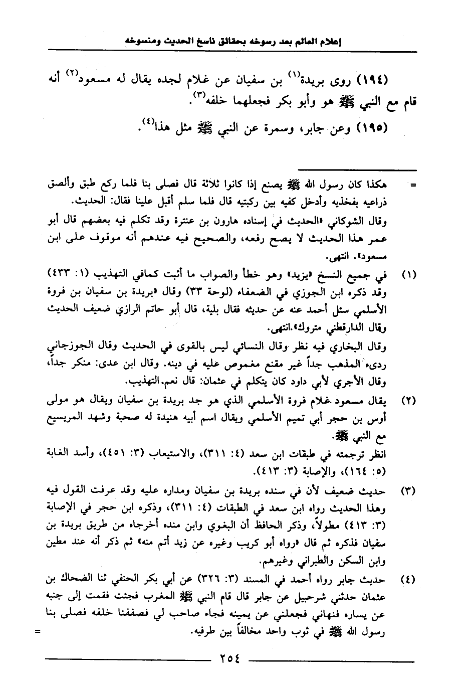 190 194 - رَوَى بُرَيْدَةَ بْنُ سُفْيَانَ، عَنْ غُلَامٍ لَجَدِّهِ يُقَالُ لَهُ: مَسْعُوُدْ، «أَنَّهُ قَامَ مَعَ النَّبِيِّ صَلَّى اللَّهُ عَلَيْهِ وَسَلَّمَ هُوَ وَأَبُو بَكْرٍ، فَجَعَلَهُمَا خَلْفَهُ» ،