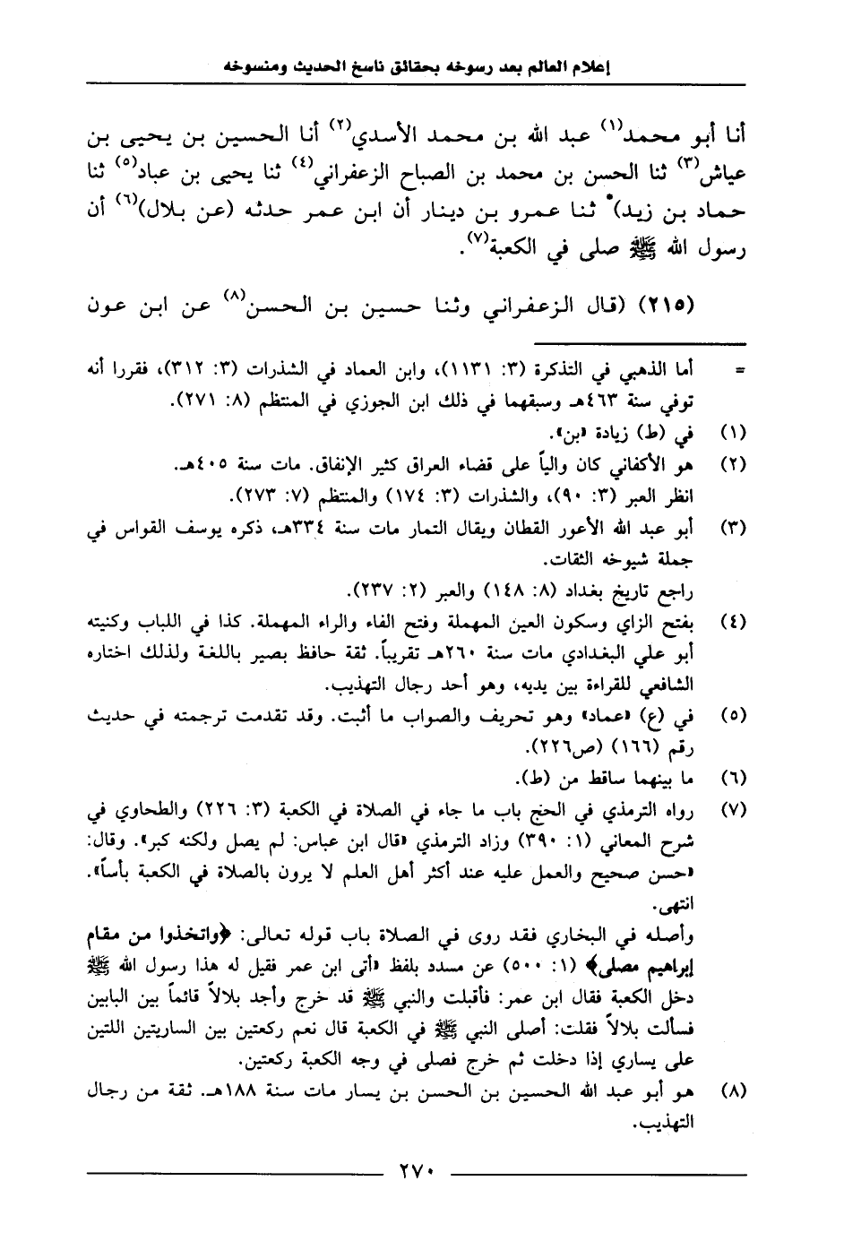 215 - قَالَ الزَّعْفَرَانِيُّ وَثَنَا حُسَيْنُ بْنُ الْحَسَنِ، عَنِ ابْنِ عَوْنٍ،