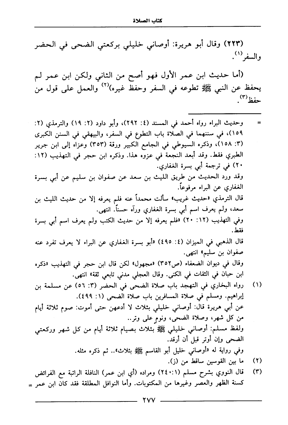 216 223 - وَقَالَ أَبُو هُرَيْرَةَ: «أَوْصَانِي خَلِيلِي بِرَكْعَتَيِ الضُّحَى فِي الْحَضَرِ وَالسَّفَرِ» .