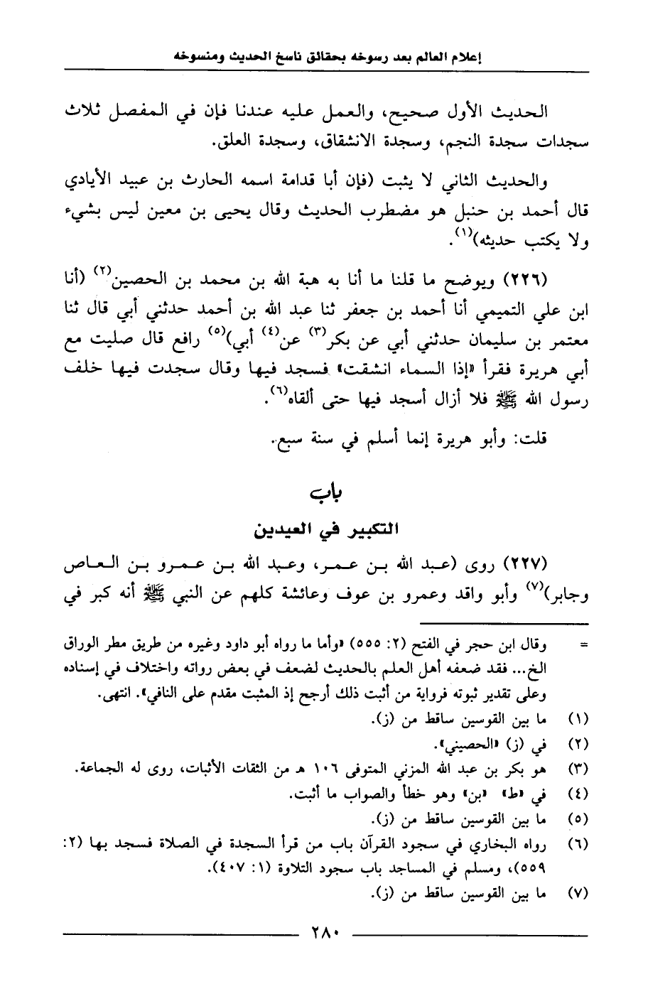 227 - رَوَى عَبْدُ اللَّهِ بْنُ عُمَرَ، وَعَبْدُ اللَّهِ بْنُ عَمْرِو بْنِ الْعَاصِ، وَجَابِرُ، وَأَبُو وَاقِدٍ، وَعَمْرُو بْنُ عَوْفٍ، وَعَائُشَةُ، كُلُّهُمْ عَنِ النَّبِيِّ صَلَّى اللَّهُ عَلَيْهِ وَسَلَّمَ: «أَنَّهُ كَبَّرَ فِي