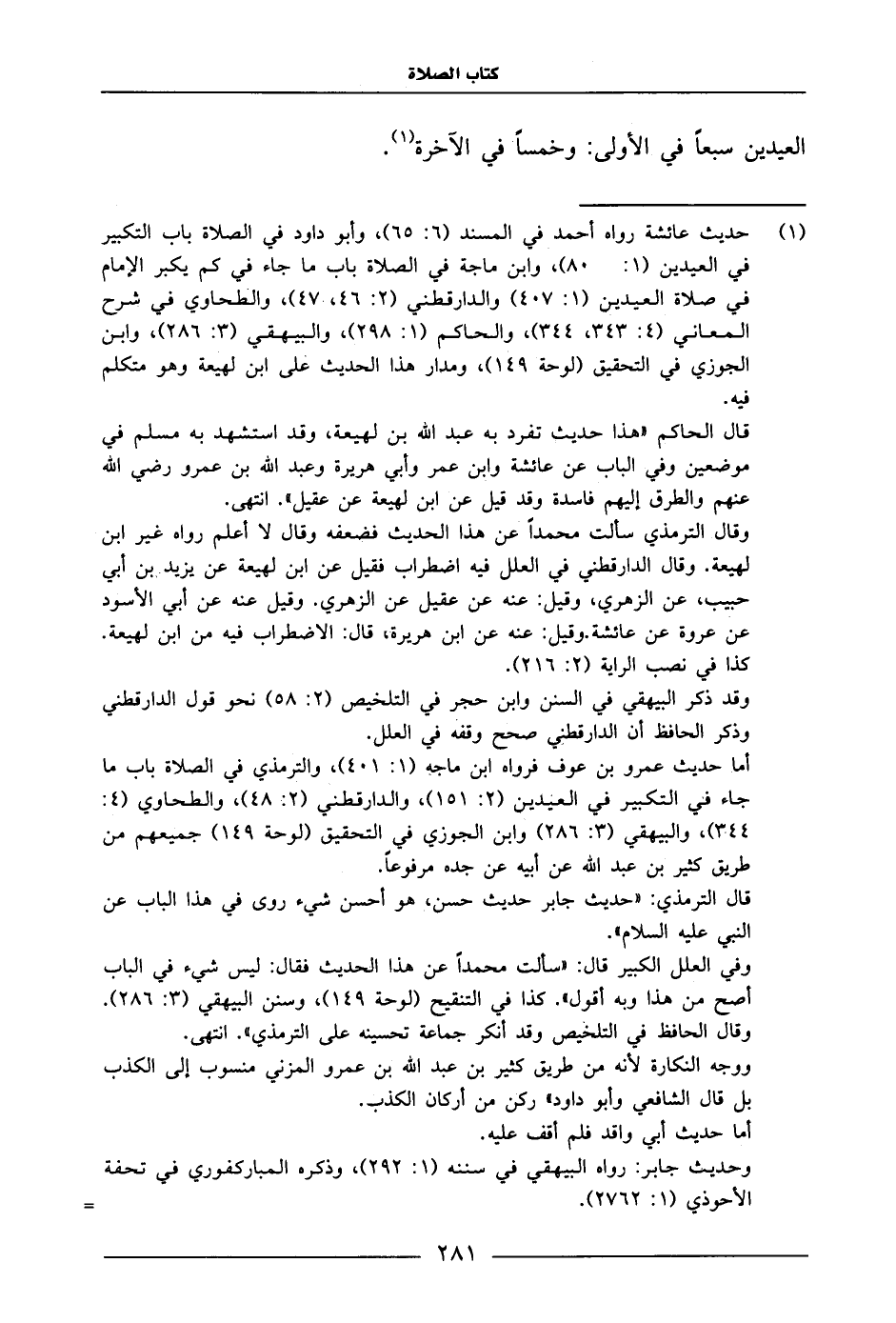 الْعِيدَيْنِ سَبْعًا فِي الأُولَى وَخَمْسًا فِي الْآخِرَةِ»