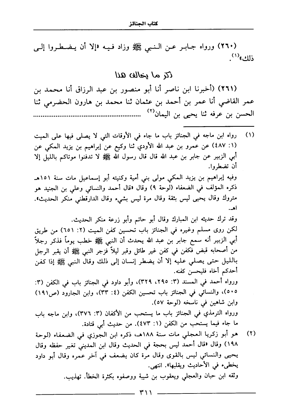 261 - أَخْبَرَنَا ابْنُ نَاصِرٍ، أَنَا أَبُو مَنْصُورِ بْنُ عَبْدِ الرَّزَّاقِ، أَنَا مُحَمَّدُ بْنُ عُمَرَ، أَنَا عُمَرُ بْنُ أَحْمَدَ، ثنا مُحَمَّدُ بْنُ هَارُونَ الْحَضْرَمِيُّ، ثنا الْحَسَنُ بْنُ عَرَفَةَ، ثنا يَحْيَى بْنُ الْيَمَانِ،