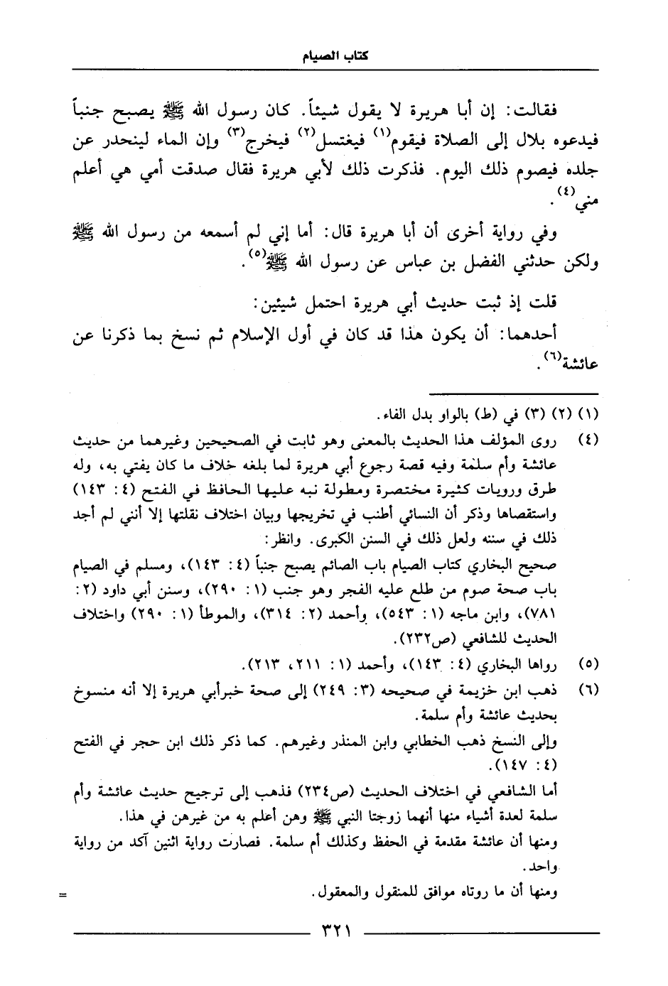 قُلْتُ: إِذَا ثَبَتَ حَدِيثُ أَبِي هُرَيْرَةَ احْتَمَلَ شَيْئَيْنِ: أَحَدُهُمَا: أَنْ يَكُونَ هَذَا قَدْ كَانَ فِي أَوَّلِ الْإِسْلَامِ ثُمَّ نُسِخَ بِمَا ذَكَرْنَا عَنْ عَائِشَةَ.