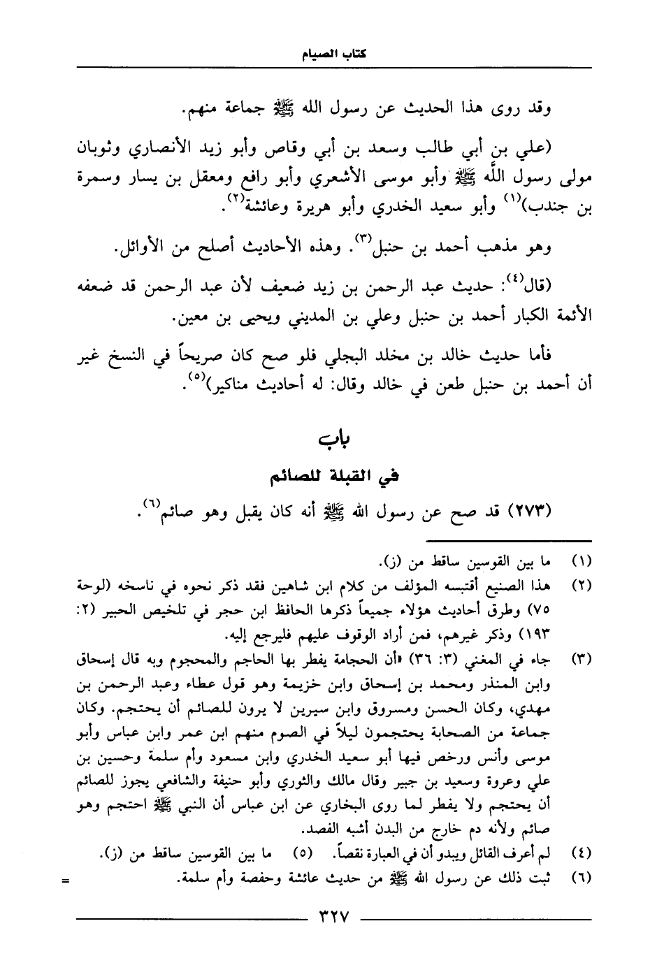 273 - قَدْ صَحَّ عَنْ رَسُولِ اللَّهِ صَلَّى اللَّهُ عَلَيْهِ وَسَلَّمَ: «أَنَّهُ كَانَ يُقَبِّلُ وَهُوَ صَائِمٌ»