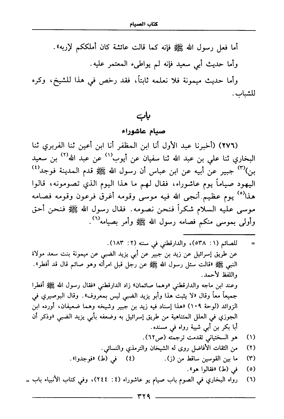 276 - أَخْبَرَنَا عَبْدُ الْأَوَّلِ، أَنَا ابْنُ الْمُظَفَّرِ، أَنَا ابْنُ أَعْيَنَ، ثنا الْفَرْبَرِيُّ، ثنا الْبُخَارِيُّ، ثنا عَلِيُّ بْنُ عَبْدِ اللَّهِ، ثنا سُفْيَانُ، عَنْ أَيُّوبَ، عَنْ عَبْدِ اللَّهِ بْنِ سَعِيدِ بْنِ جُبَيْرٍ، عَنْ أَبِيهِ، عَنِ ابْنِ عَبَّاسٍ: أَنّ رَسُولَ اللَّهِ صَلَّى اللَّهُ عَلَيْهِ وَسَلَّمَ قَدِمَ الْمَدِينَةَ، فَوَجَدَ الْيَهُودَ صِيَامًا يَوْمَ عَاشُورَاءَ، فَقَالَ لَهُمْ: «مَا هَذَا الْيَوْمَ الَّذِي تَصُومُونَهُ» ، قَالُوا: هَذَا يَوْمٌ عَظِيمٌ، أَنْجَى اللَّهُ فِيهِ مُوسَى وَقَوْمَهُ، وَأَغْرَقَ فِرْعَوْنَ وَقَوْمَهُ، فَصَامَهُ مُوسَى عَلَيْهِ السَّلَامُ شُكْرًا، فَنَحْنُ نَصُومُهُ.