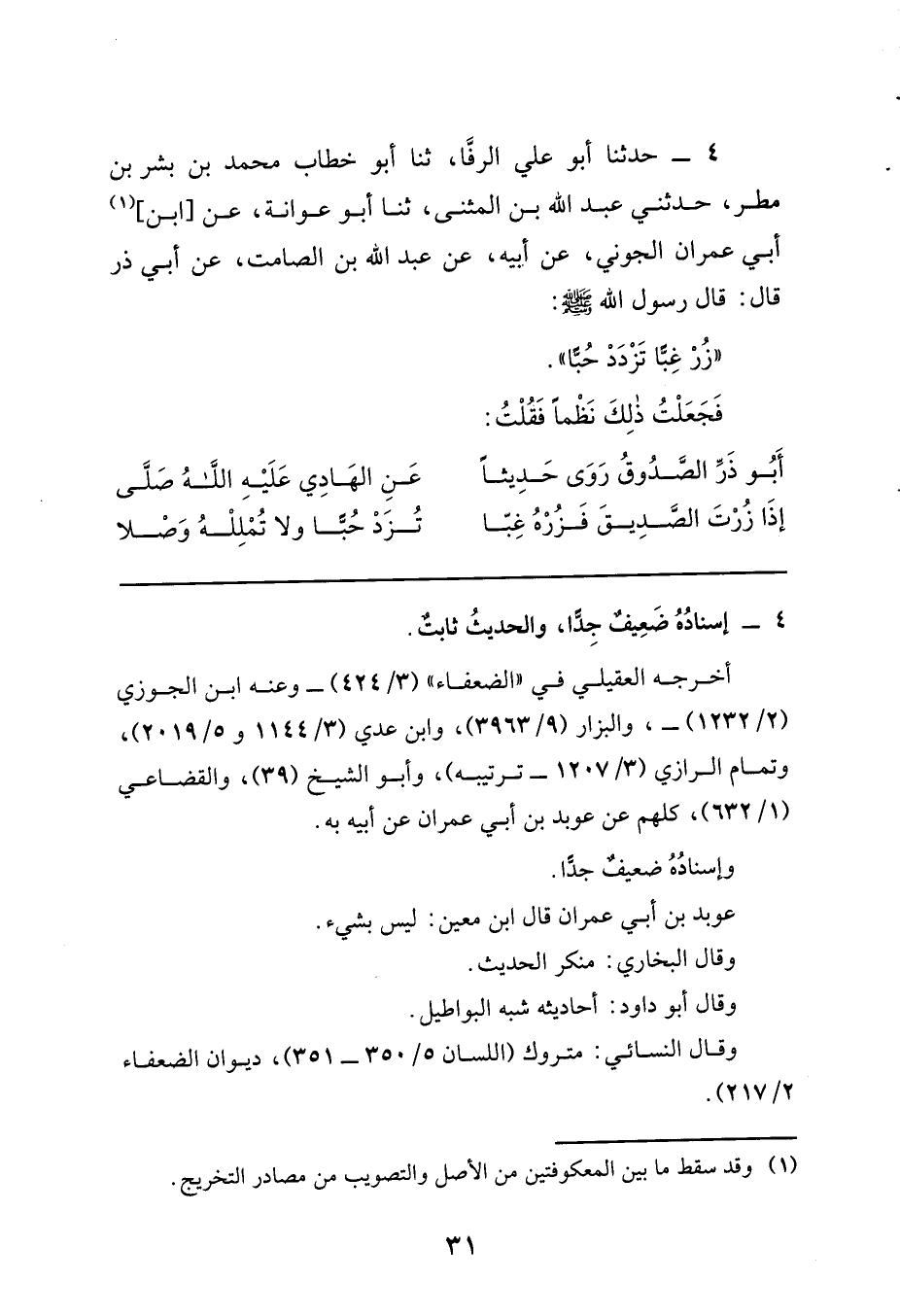 أَبُو ذَرٍّ الصَّدُوقُ رَوَى حَدِيثًا ... عَنِ الْهَادِي عَلَيْهِ اللَّهُ صَلَّى