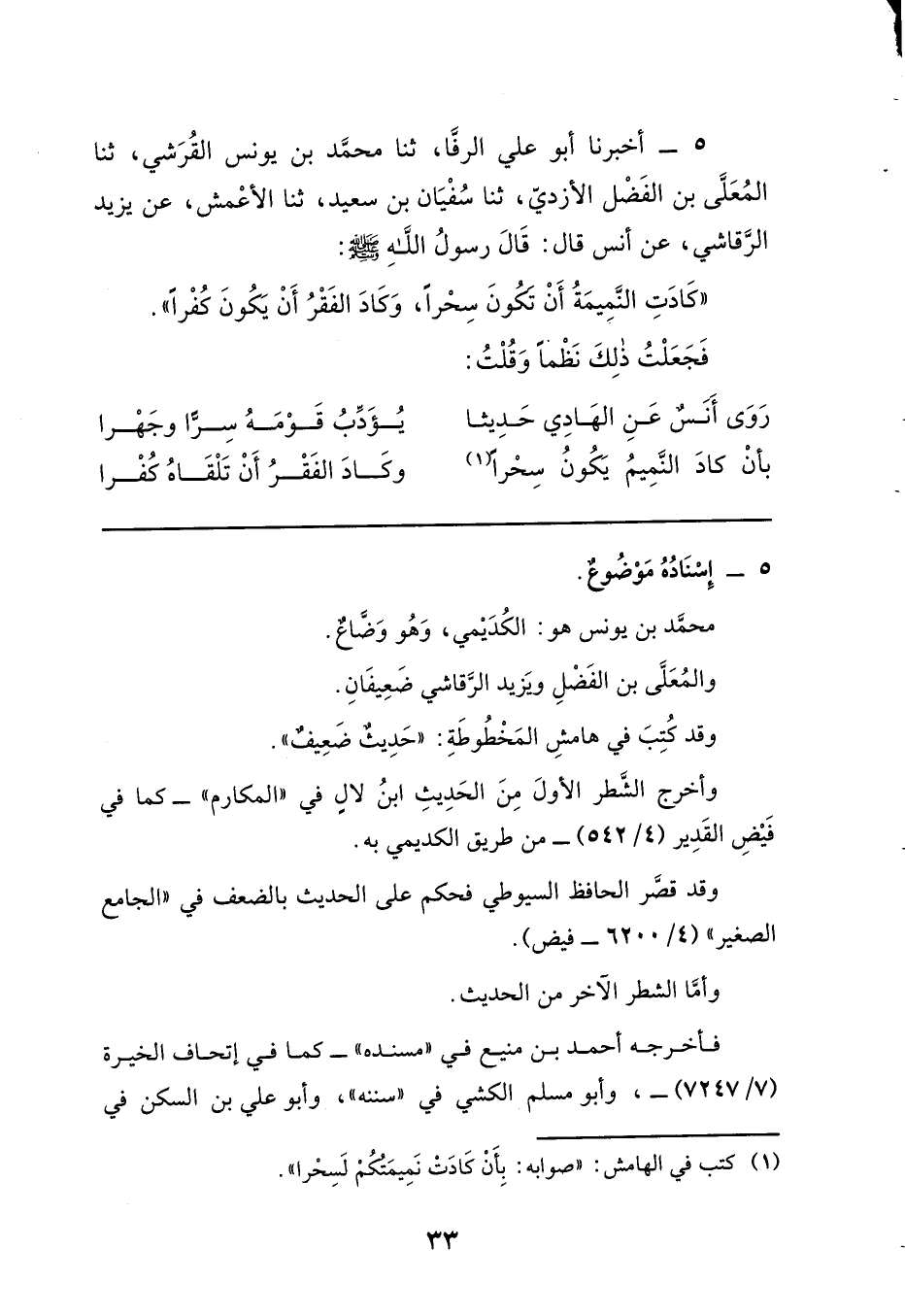 ((كَادَتِ النَّمِيمَةُ أَنْ تَكُونَ سِحْرًا، وَكَادَ الْفَقْرُ أَنْ يَكُونَ كُفْرًا)) .
