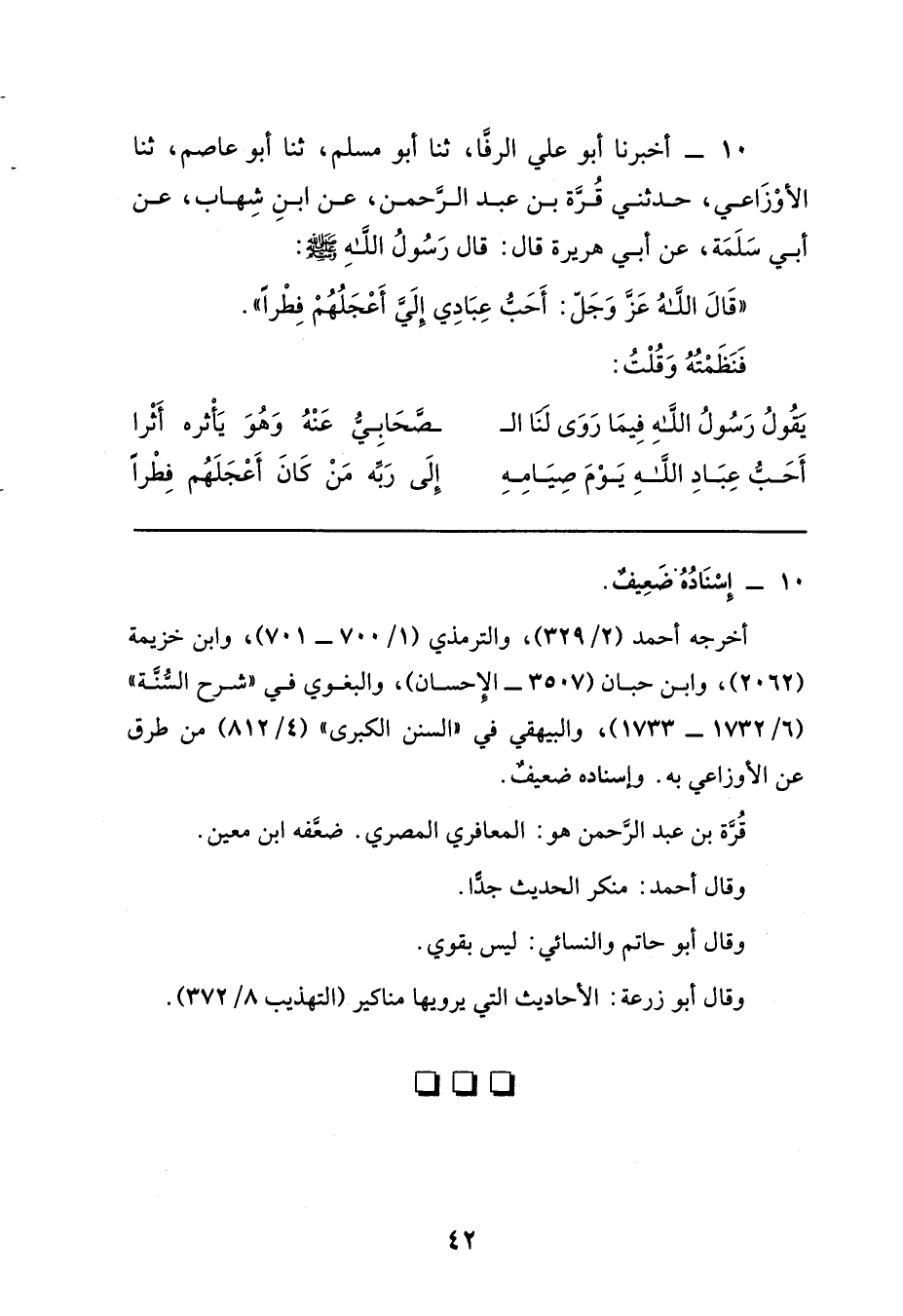 أَحَبُّ عِبَادِ اللَّهِ يَوْمَ صِيَامِهِ ... إِلَى رَبِّهِ مَنْ كَانَ أَعْجَلَهُمْ فِطْرًا.