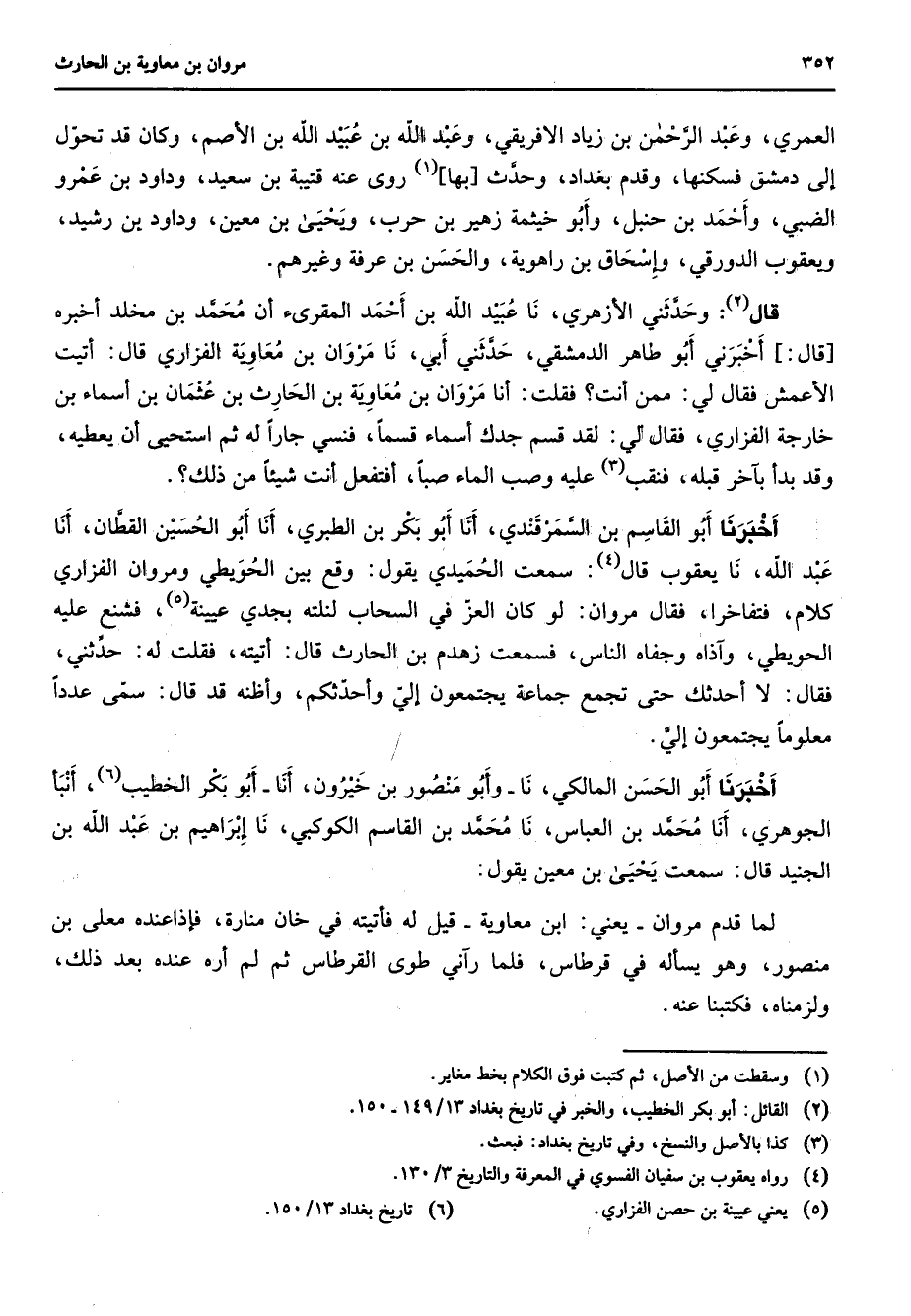 (2) القائل: أبو بكر الخطيب والخبر في تاريخ بغداد 13 / 149 - 150