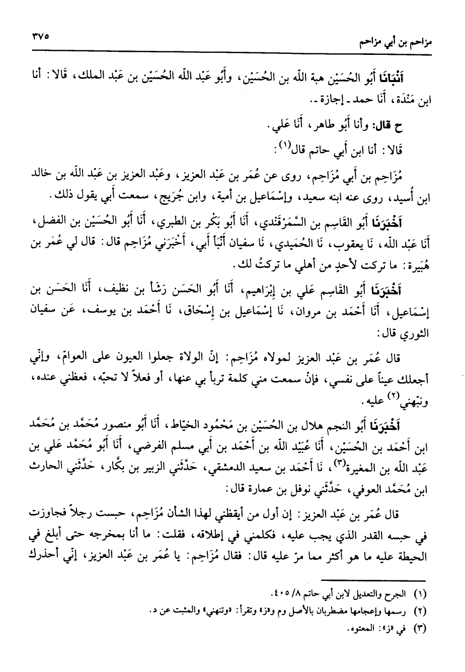 (1) الجرح والتعديل لابن أبي حاتم 8 / 405