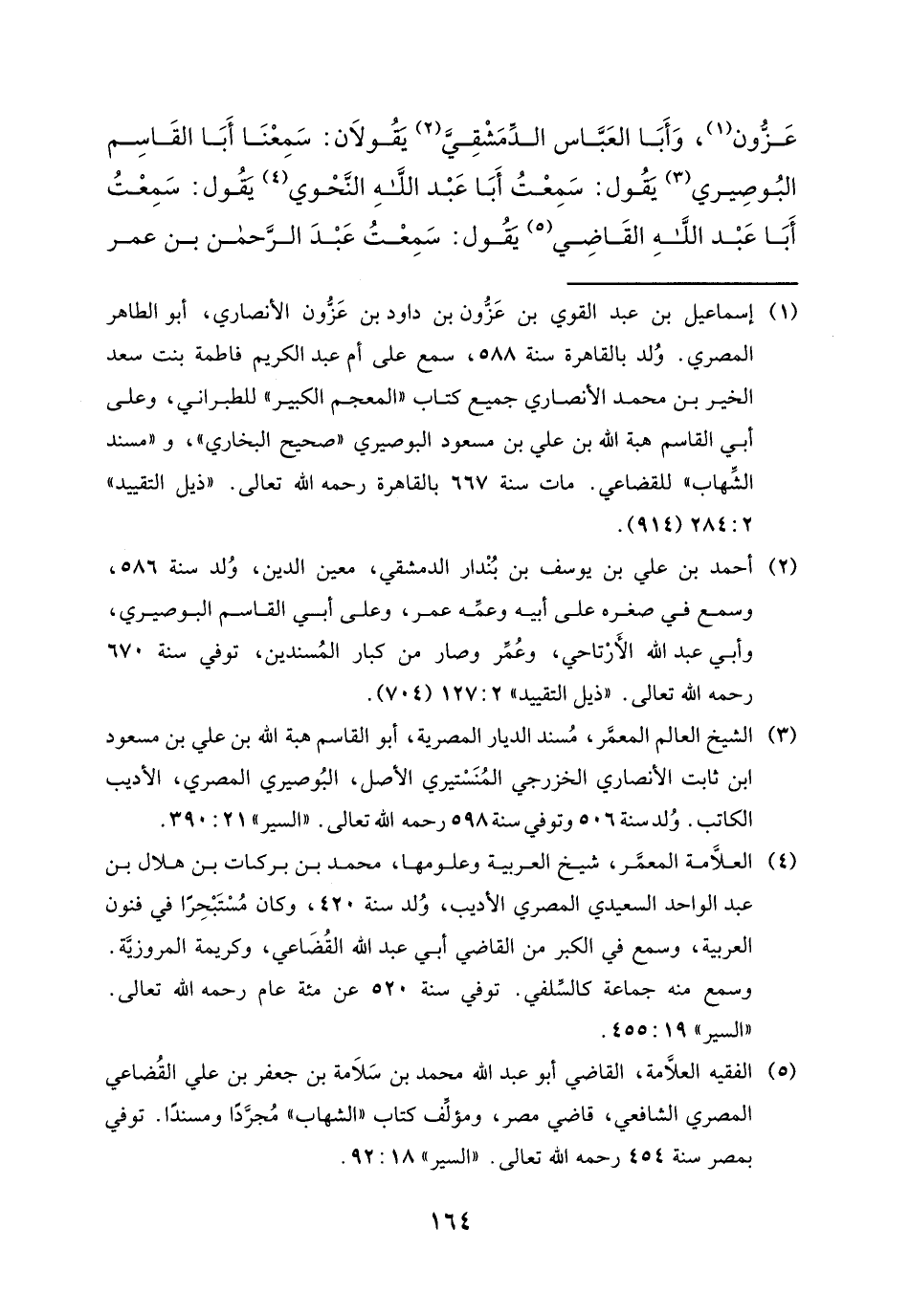 عَزُّونٍ، وَأَبَا الْعَبَّاسِ الدِّمَشْقِيَّ، يَقُولَانِ: سَمِعْنَا أَبَا الْقَاسِمِ الْبُوصِيرِيَّ، يَقُولُ: سَمِعْتُ أَبَا عَبْدِ اللَّهِ النَّحْوِيَّ، يَقُولُ: سَمِعْتُ أَبَا عَبْدِ اللَّهِ الْقَاضِي، يَقُولُ: سَمِعْتُ عَبْدَ الرَّحْمَنِ بْنَ عُمَرَ