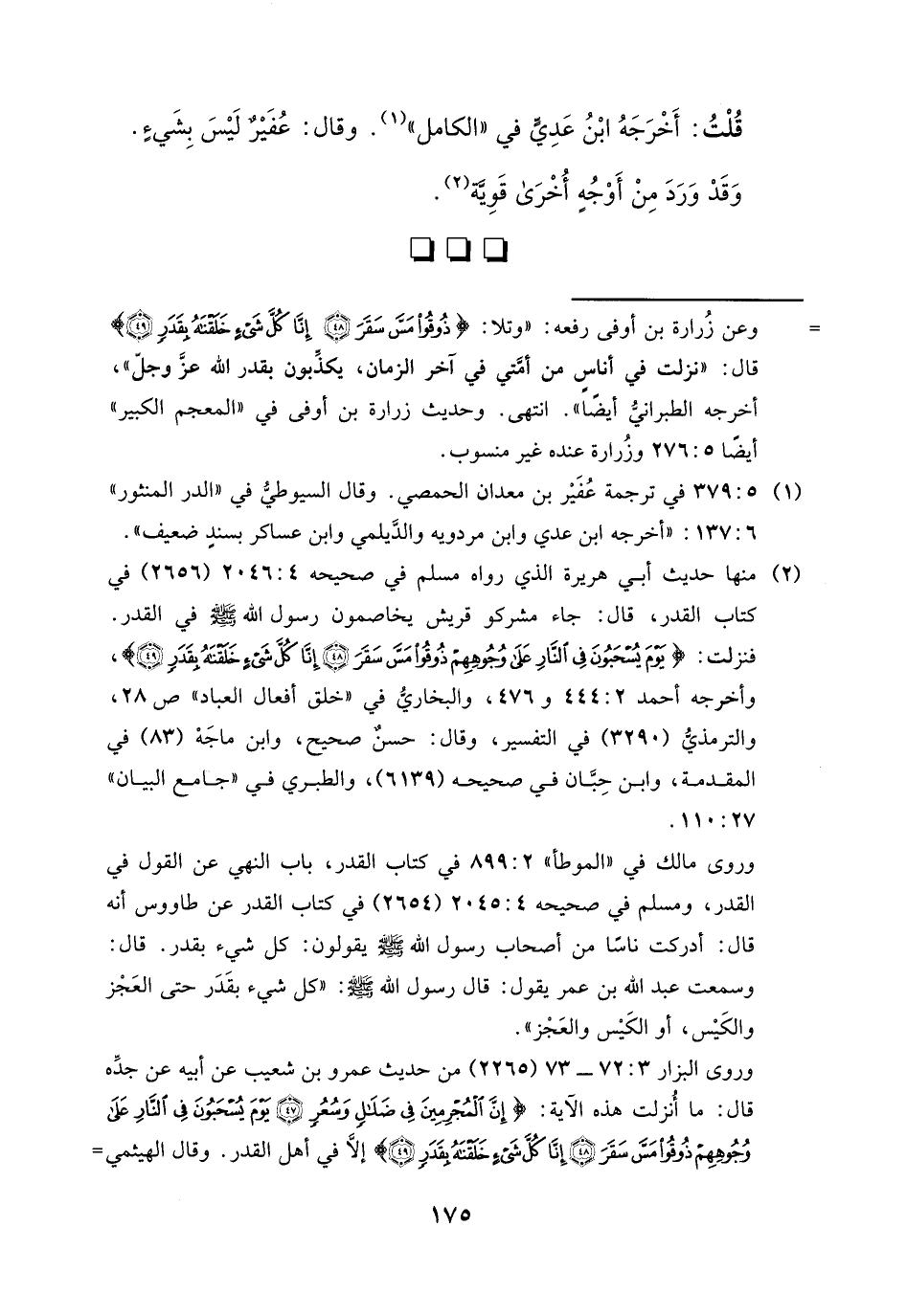 قُلْتُ: أَخْرَجَهُ ابْنُ عَدِيٍّ، فِي الْكَامِلِ، وَقَالَ: عُفَيْرٌ لَيْسَ بِشَيْءٍ.