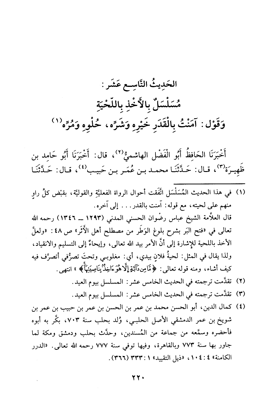 مسلسل بِالأَخْذِ بِاللِّحْيَةِ وَقَوْلِ: آمَنْتُ بِالْقَدَرِ خَيْرِهِ وَشَرِّهِ، حُلْوِهِ وَمُرِّهِ