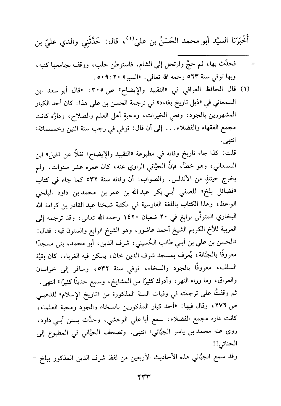 أَخْبَرَنَا السَّيِّدُ أَبُو مُحَمَّدٍ الْحَسَنُ بْنُ عَلِيٍّ، قَالَ: حَدَّثَنِي وَالِدِي عَلِيُّ بْنُ أَبِي طَالِبٍ، قَالَ: حَدَّثَنِي وَالِدِي أَبُو طَالِبٍ الْحَسَنُ بْنُ عُبَيْدِ اللَّهِ، قَالَ: حَدَّثَنِي وَالِدِي عُبَيْدُ اللَّهِ بْنُ مُحَمَّدٍ، قَالَ: حَدَّثَنِي وَالِدِي مُحَمَّدُ بْنُ عُبَيْدِ اللَّهِ، قَالَ: حَدَّثَنِي وَالِدِي عُبَيْدُ اللَّهِ بْنُ عَلِيٍّ، قَالَ: حَدَّثَنِي وَالِدِي عَلِيُّ بْنُ الْحَسَنِ، قَالَ: حَدَّثَنِي وَالِدِي الْحَسَنُ بْنُ الْحُسَيْنِ، قَالَ: حَدَّثَنِي وَالِدِي الْحُسَيْنُ بْنُ جَعْفَرٍ، قَالَ: حَدَّثَنِي وَالِدِي جَعْفَرُ بْنُ عُبَيْدِ اللَّهِ، قَالَ: حَدَّثَنِي وَالِدِي عُبَيْدُ اللَّهِ بْنُ الْحُسَيْنِ، قَالَ: حَدَّثَنِي وَالِدِي الْحُسَيْنُ، قَالَ: حَدَّثَنِي وَالِدِي عَلِيٌّ زَيْنُ الْعَابِدِينَ، قَالَ: حَدَّثَنِي وَالِدِي الْحُسَيْنُ، قَالَ: حَدَّثَنِي وَالِدِي عَلِيُّ بْنُ