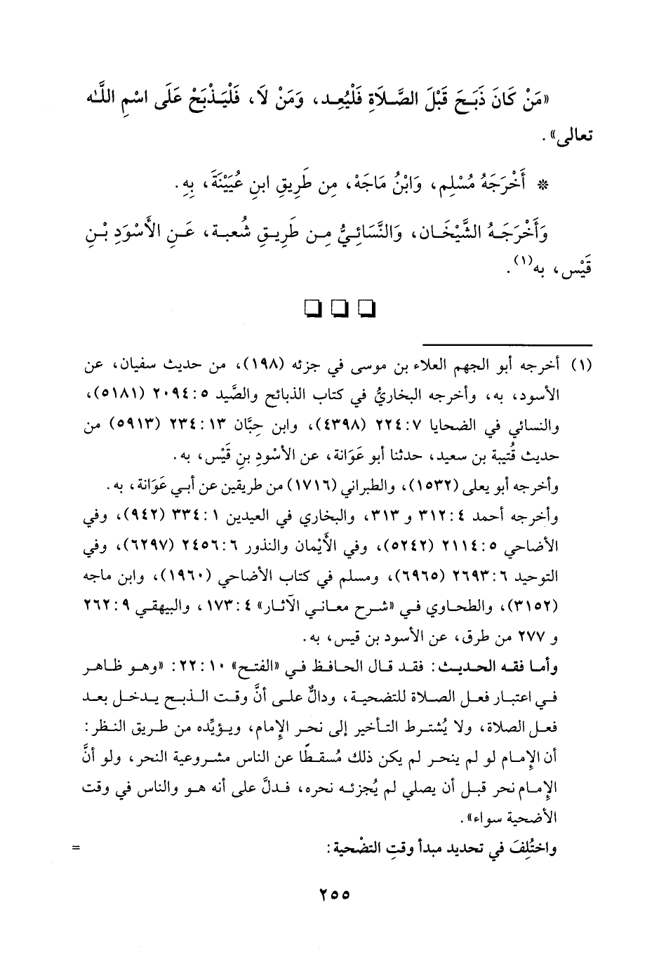 وَأَخْرَجَهُ الشَّيْخَانِ، وَالنَّسَائِيُّ مِنْ طَرِيقِ شُعْبَةَ، عَنِ الأَسْوَدِ بْنِ قَيْسٍ، بِهِ