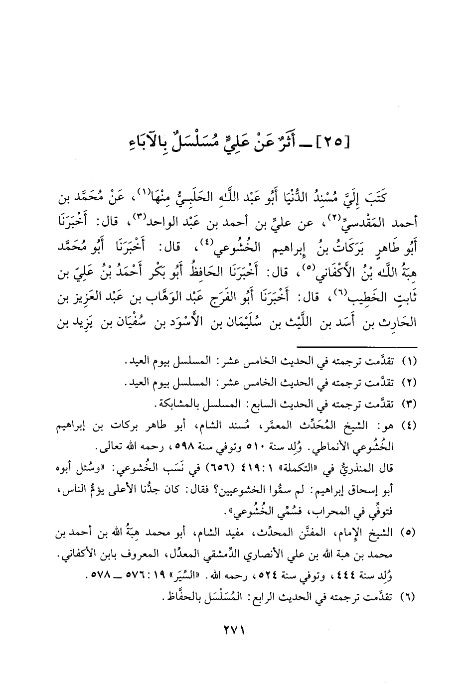 أَثَرٌ عَنْ عَلِيٍّ مُسَلْسَلٌ بِالْآبَاءِ