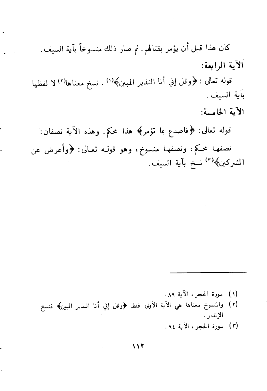 الْآيَة الرَّابِعَة قَوْله تَعَالَى {وَقُل إِنّي أَنا النَذيرُ المُبين} نسخ مَعْنَاهَا لَا لَفظهَا بِآيَة السَّيْف