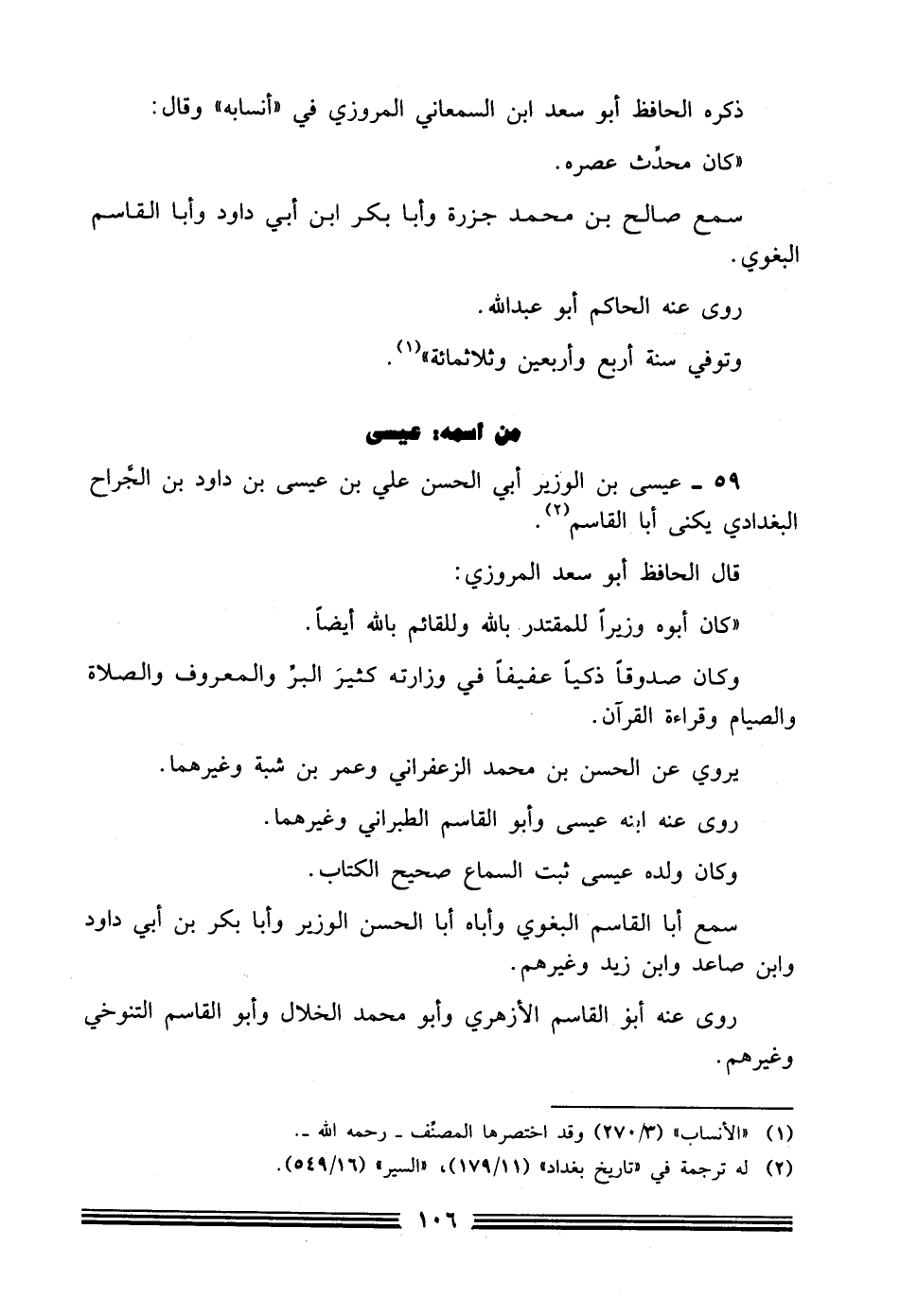 59- عيسى بن الوزير أبي الحسن علي بن عيسى بن داود بن الجراح البغدادي يكنى أبا القاسم.