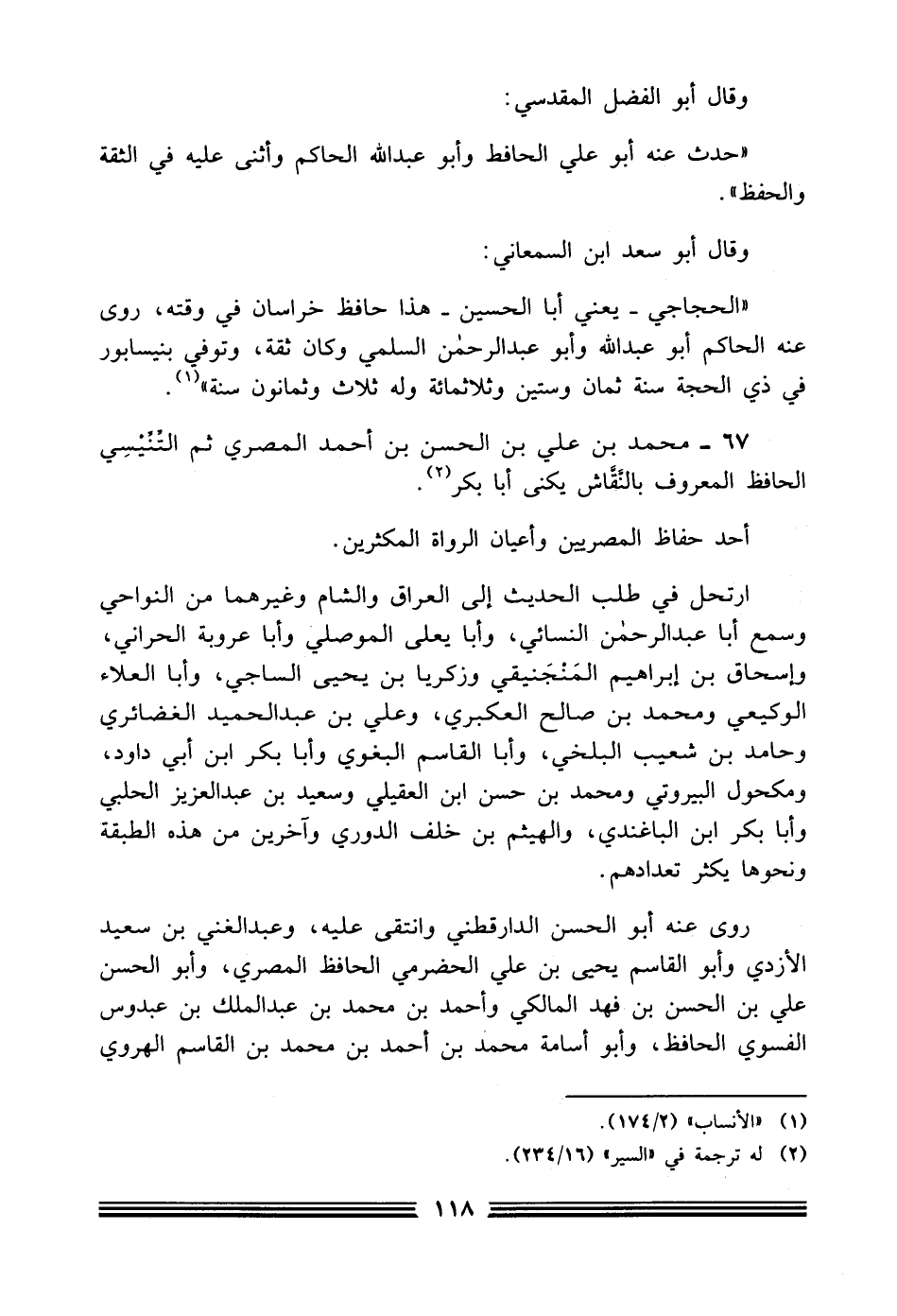 67- محمد بن علي بن الحسن بن أحمد المصري ثم التنيسي الحافظ المعروف بالنقاش يكنى أبا بكر.