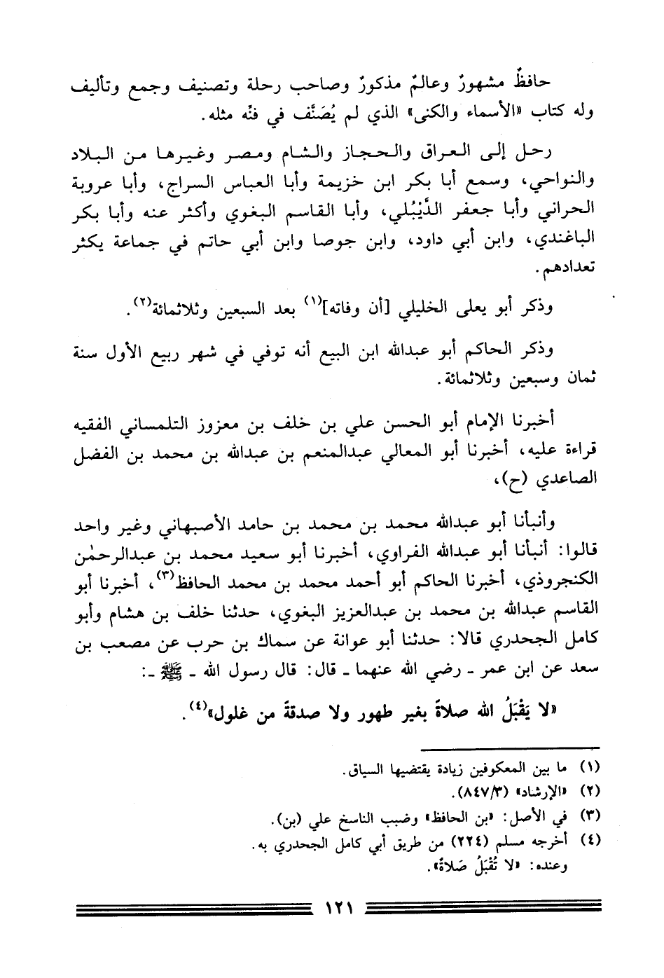حافظٌ مشهورٌ وعالمٌ مذكورٌ وصاحب رحلة وتصنيف وجمع وتأليف وله كتاب ((الأسماء والكنى)) الذي لم يصنف في فنه مثله.