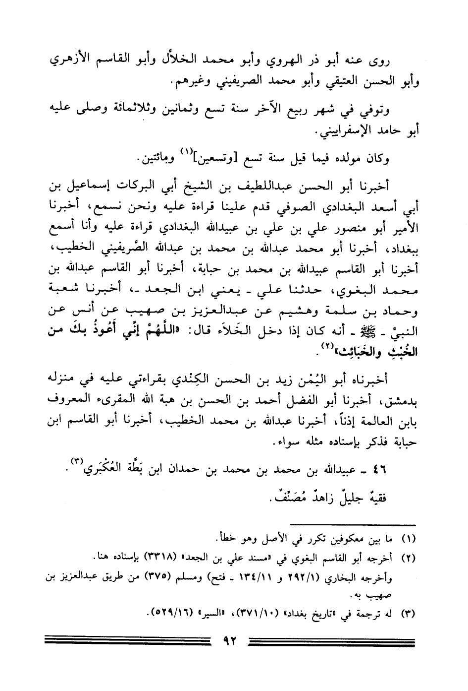 46- عبيد اللَّهِ بْنُ مُحَمَّدِ بْنِ مُحَمَّدٍ بن حمدان ابن بطة العكبري.