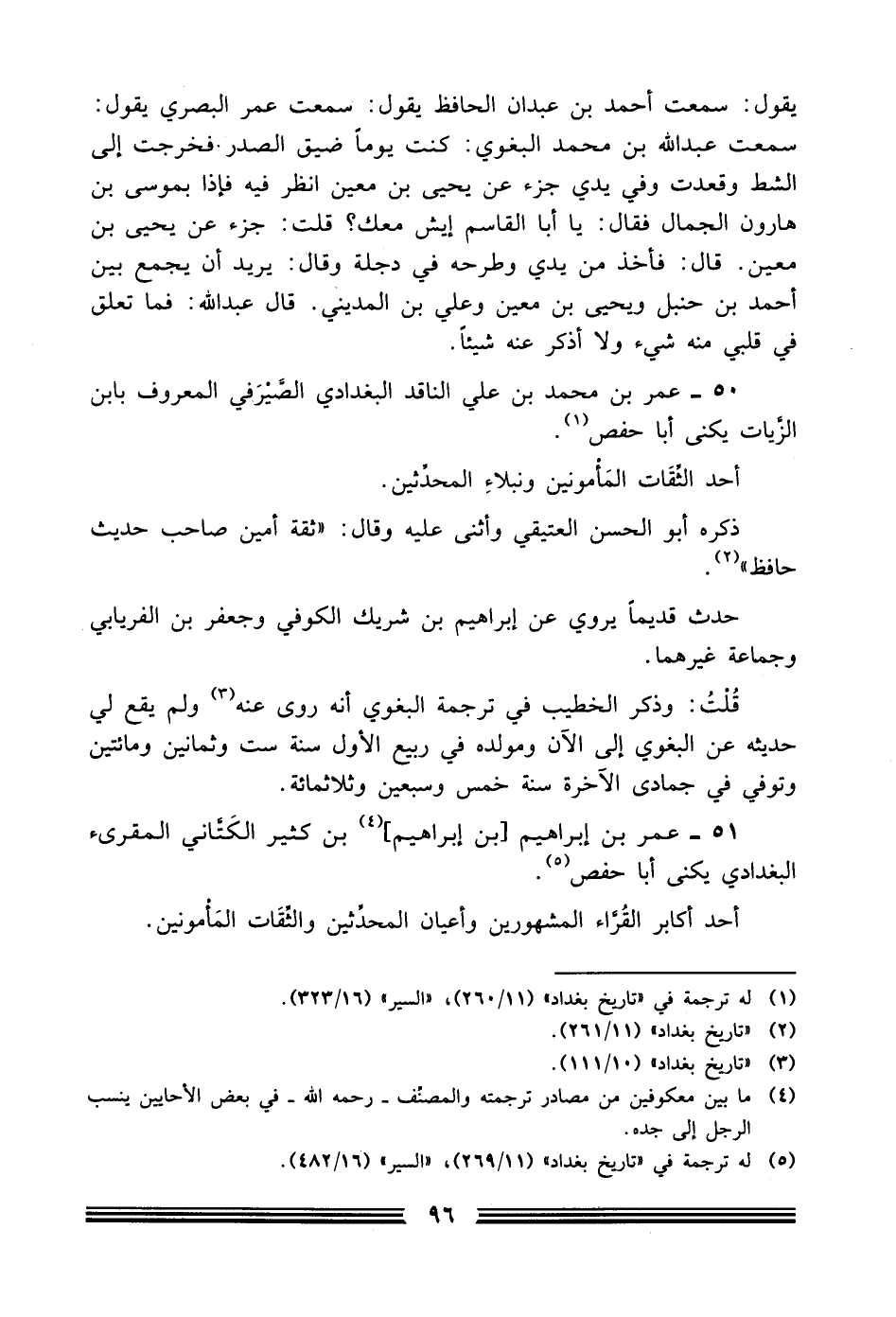 50- عمر بن محمد بن علي الناقد البغدادي الصيرفي المعروف بابن الزيات يكنى أبا حفص.