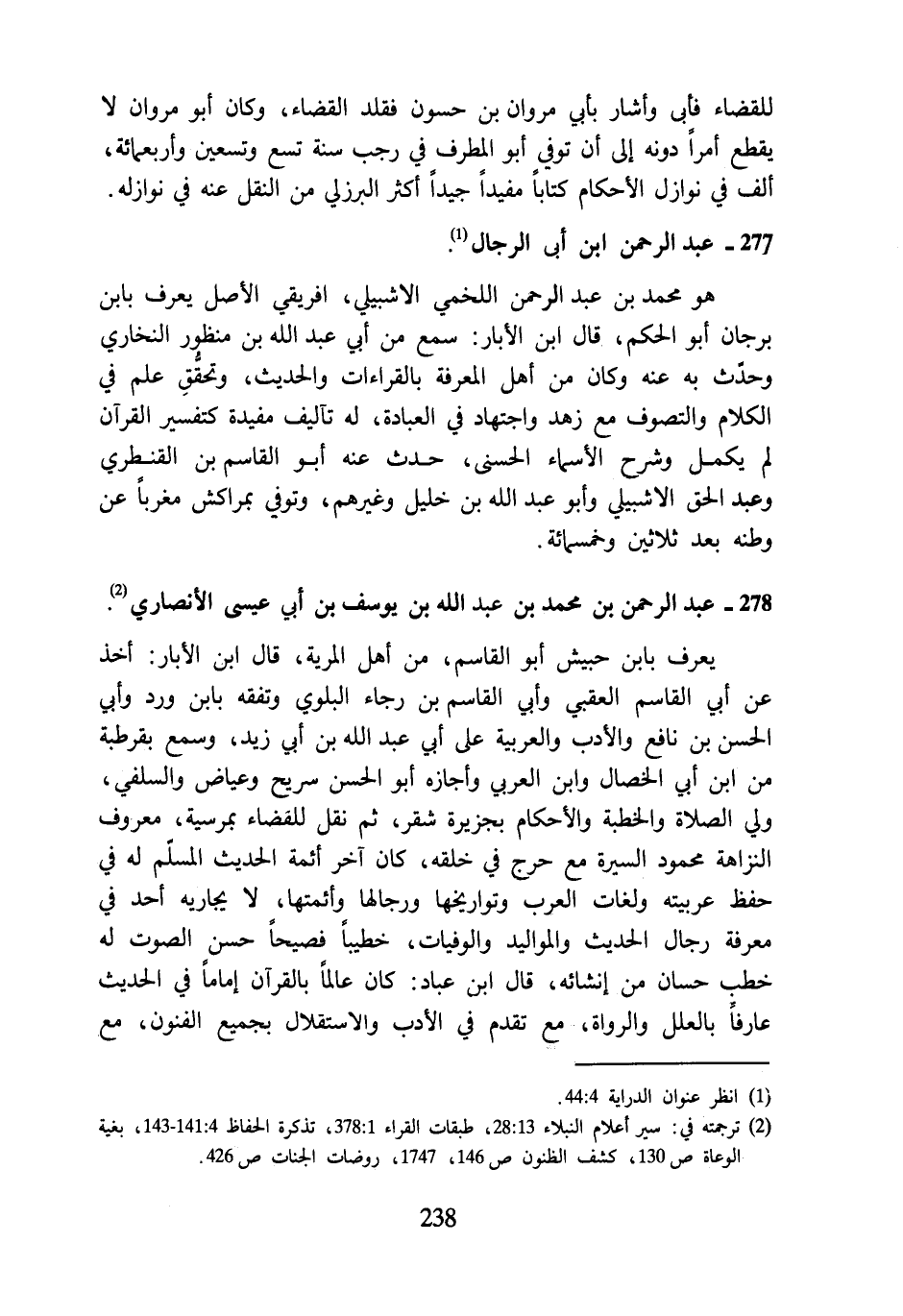 278 - عبد الرحمن بن محمد بن عبد اللَّه بن يوسف بن أبي عيسى الأنصاري (¬2).