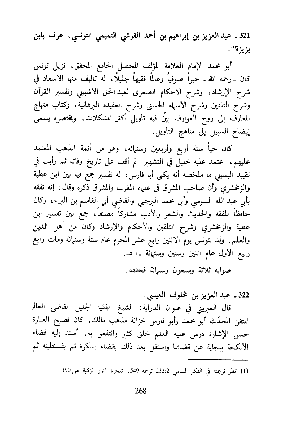 321 - عبد العزيز بن إبراهيم بن أحمد القرشي التميمي التونسي، عرف بابن بزيزة (¬1).