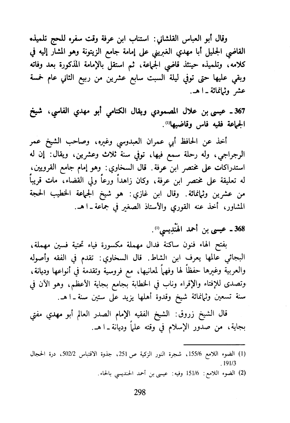 367 - عيسى بن علال المصمودي ويقال الكتامي أبو مهدي الفاسي، شيخ الجماعة فقيه فاس وقاضيها (¬1).