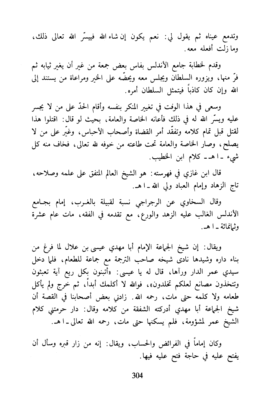 وسعى في هذا الوقت في تغيير المنكر بنفسه وأقام الحدّ على من لا يجسر عليه ويسّر اللَّه له في ذلك فأعانه الخاصة والعامة، بحيث لو قال: اقتلوا هذا لقتل قبل تمام كلامه وتفقّد أمر القضاة وأصحاب الأحباس، وغيّر على من لا يصلح، وصار الخاصة والعامة تحت طاعته من خوفه للَّه تعالى، فخاف منه كل شيء -اهـ- كلام ابن الخطيب.