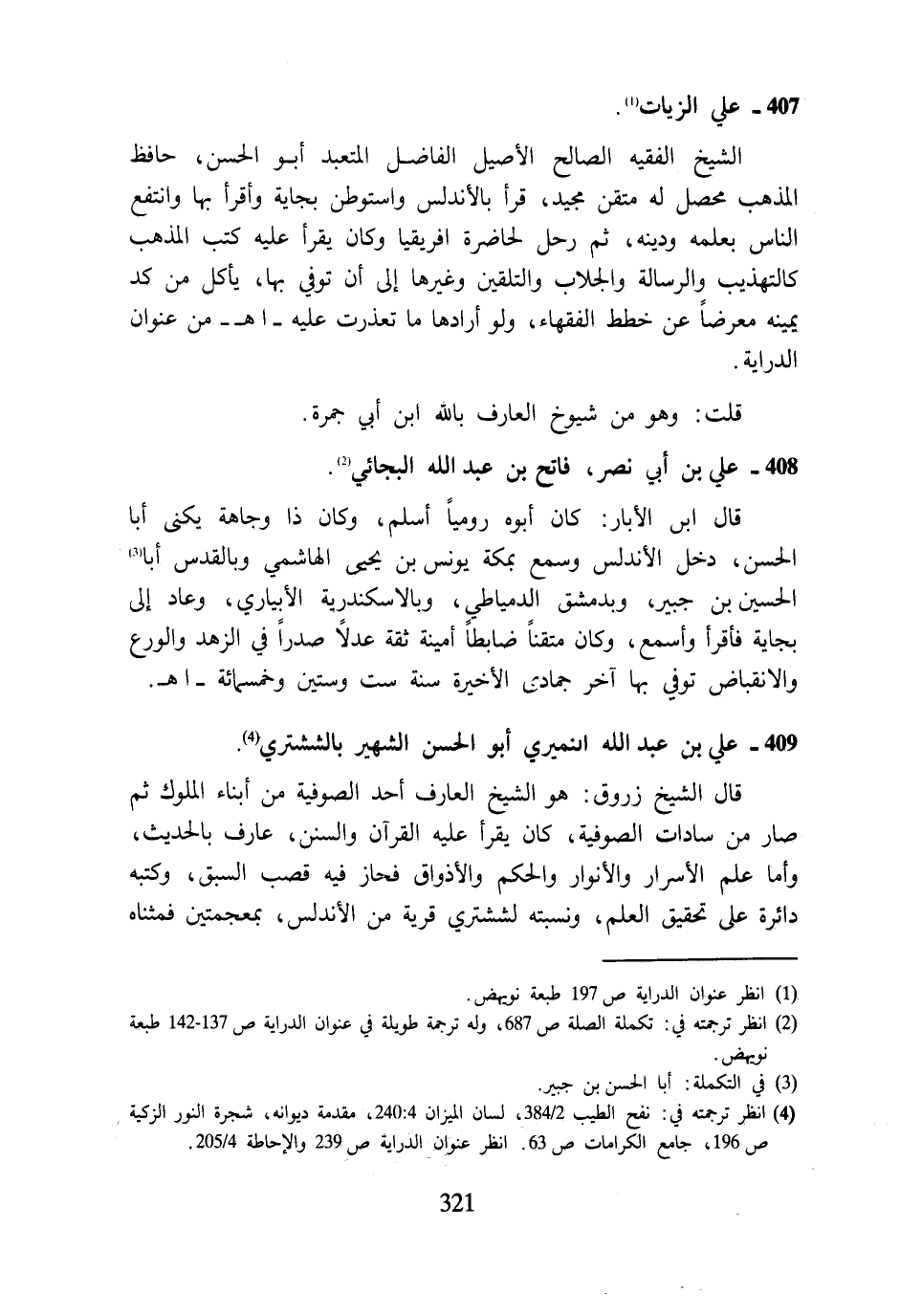 (¬4) انظر ترجمته في: نفح الطيب 2/ 384، لسان الميزان 4: 240، مقدمة ديوانه، شجرة النور الزكية ص 196، جامع الكرامات ص 63. انظر عنوان الدراية ص 239 والإحاطة 4/ 205.