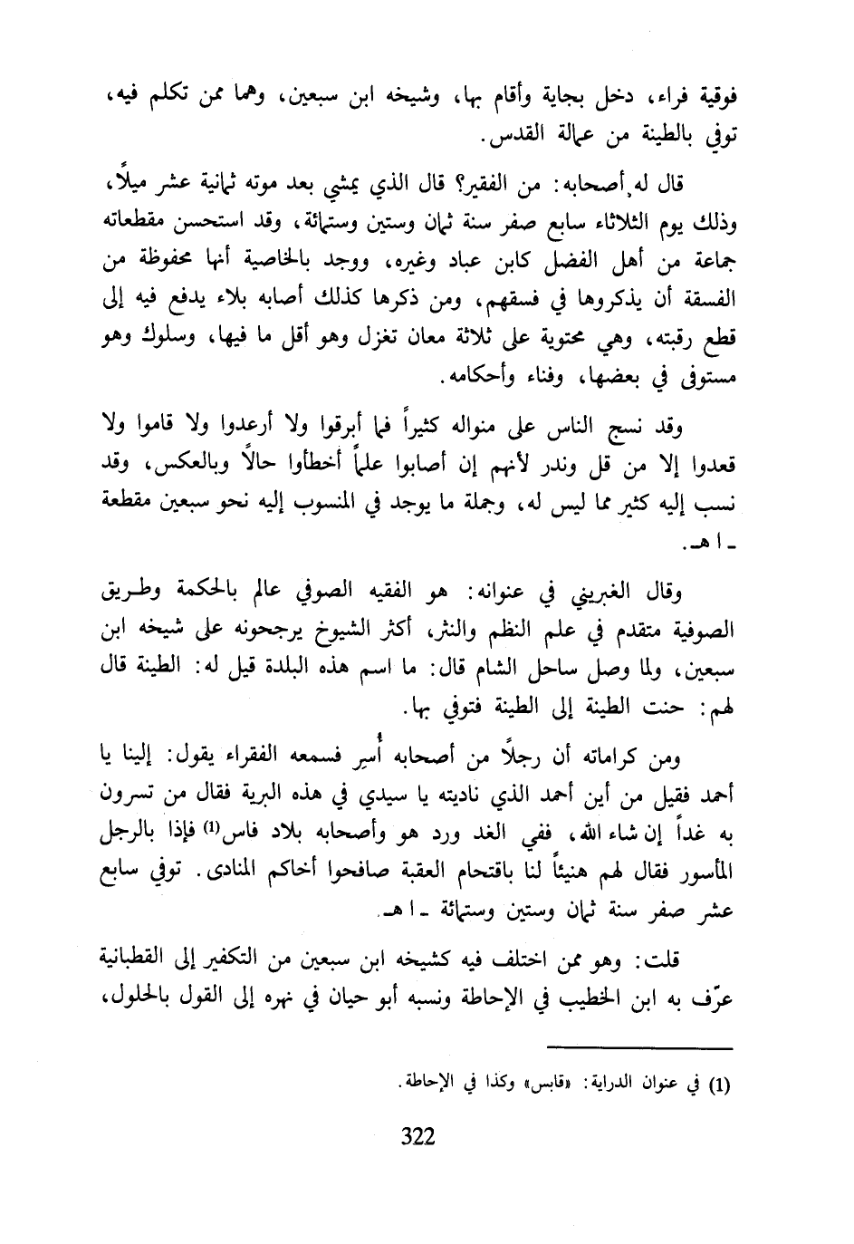 قلت: وهو ممن اختلف فيه كشيخه ابن سبعين من التكفير إلى القطبانية عرّف به ابن الخطيب في الإحاطة ونسبه أبو حيان في نهره إلى القول بالحلول،