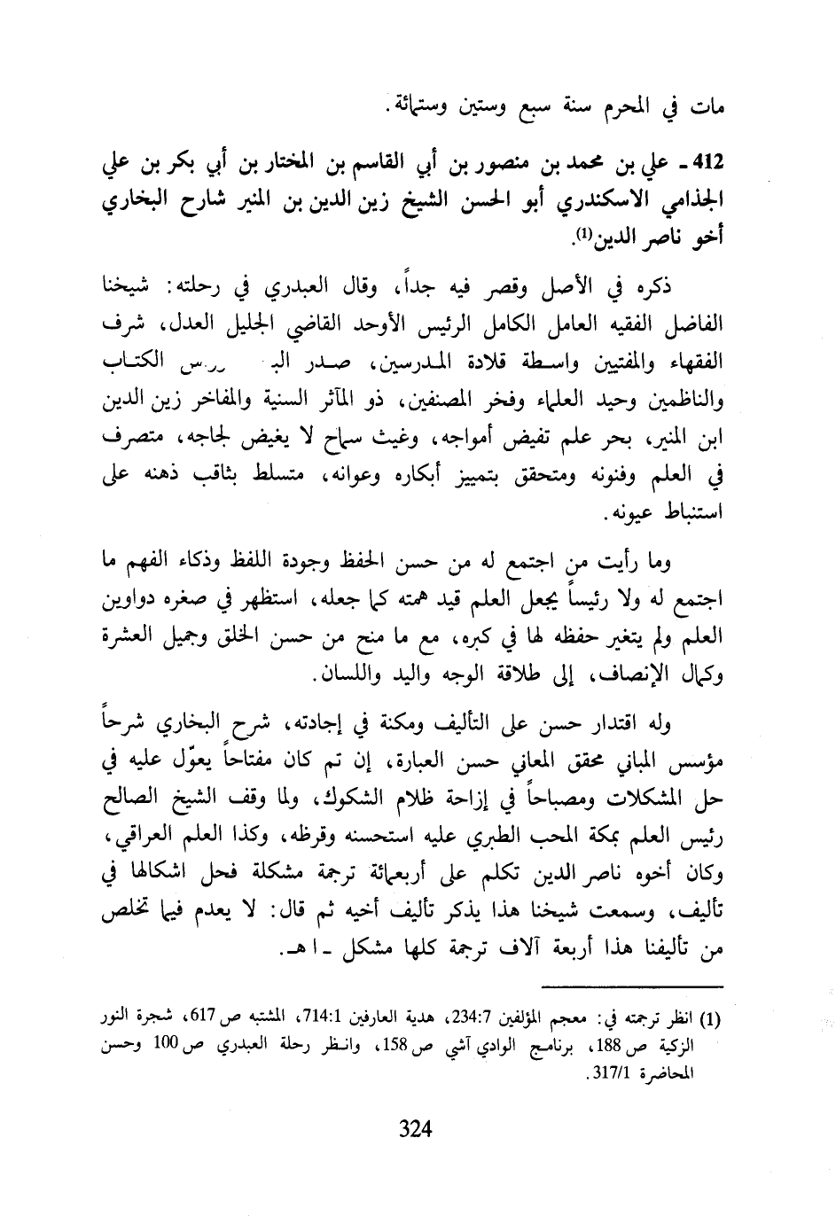 (¬1) انظر ترجمته في: معجم المؤلفين 7: 234، هدية العارفين 1: 714، المشتبه ص 617، شجرة النور الزكية ص 188، برنامج الوادي آشي ص 158، وانظر رحلة العبدري ص 100 وحسن المحاضرة 1/ 317.