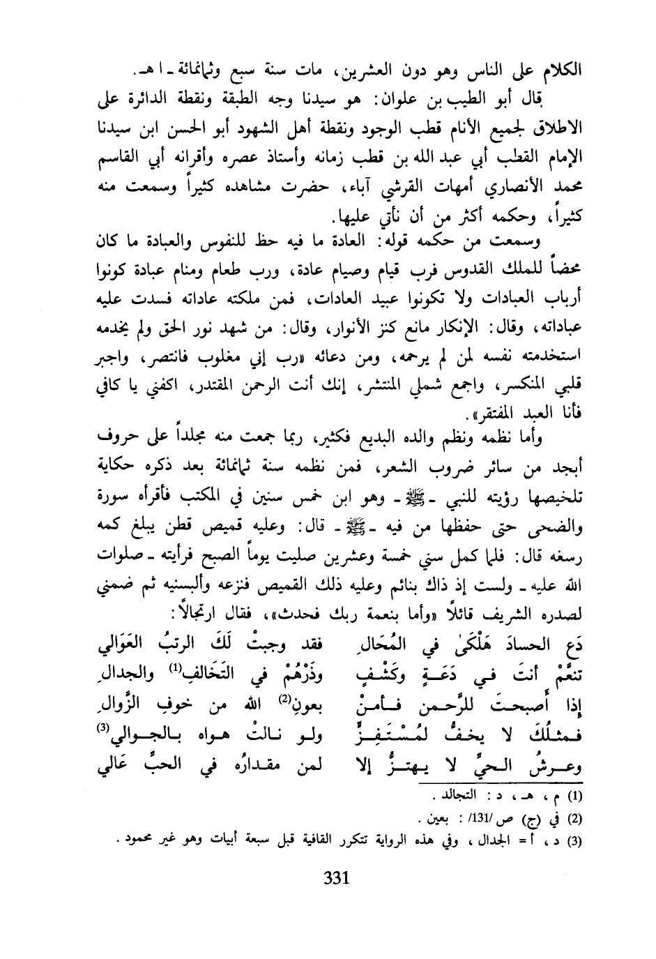 (¬3) د، أ = الجدال، وفي هذه الرواية تتكرر القافية قبل سبعة أبيات وهو غير محمود.