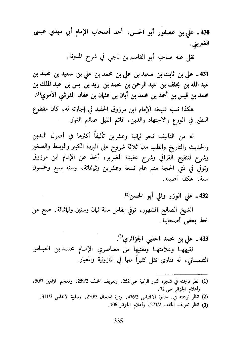 430 - علي بن عصفور أبو الحسن، أحد أصحاب الإمام أبي مهدي عيسى الغبريني.
