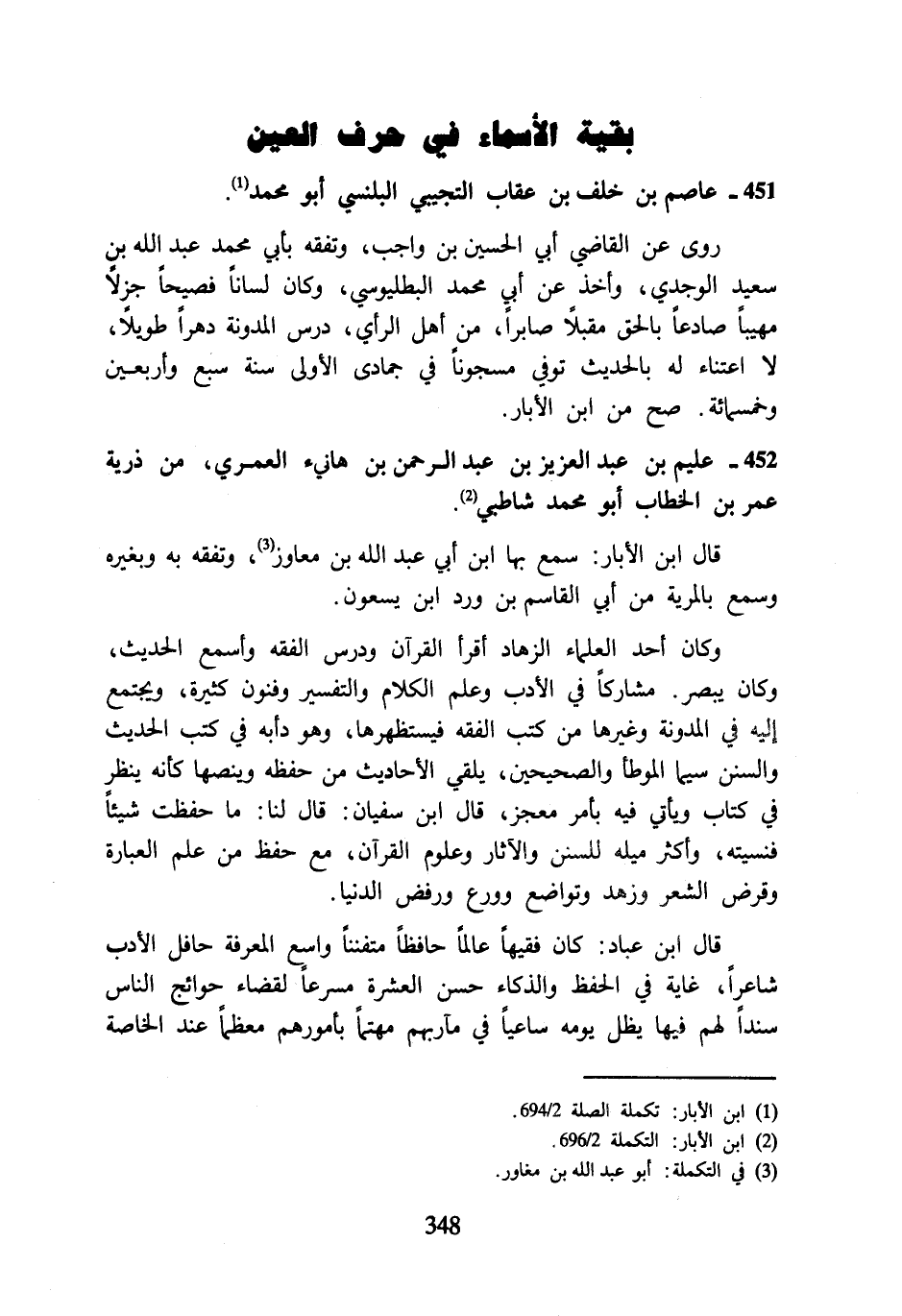 451 - عاصم بن خلف بن عقاب التجيبي البلنسي أبو محمد (¬1).