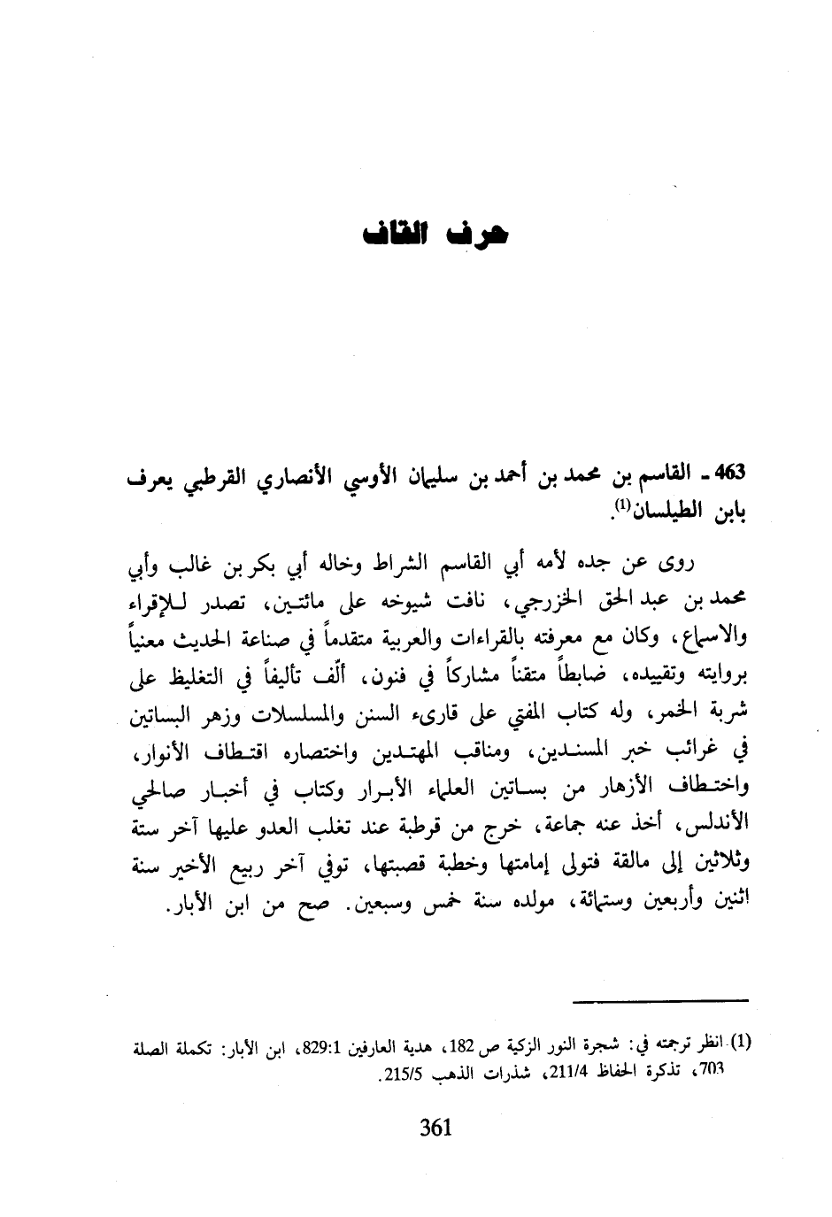 463 - القاسم بن محمد بن أحمد بن سليمان الأوسي الأنصاري القرطبي يعرف بابن الطيلسان (¬1).