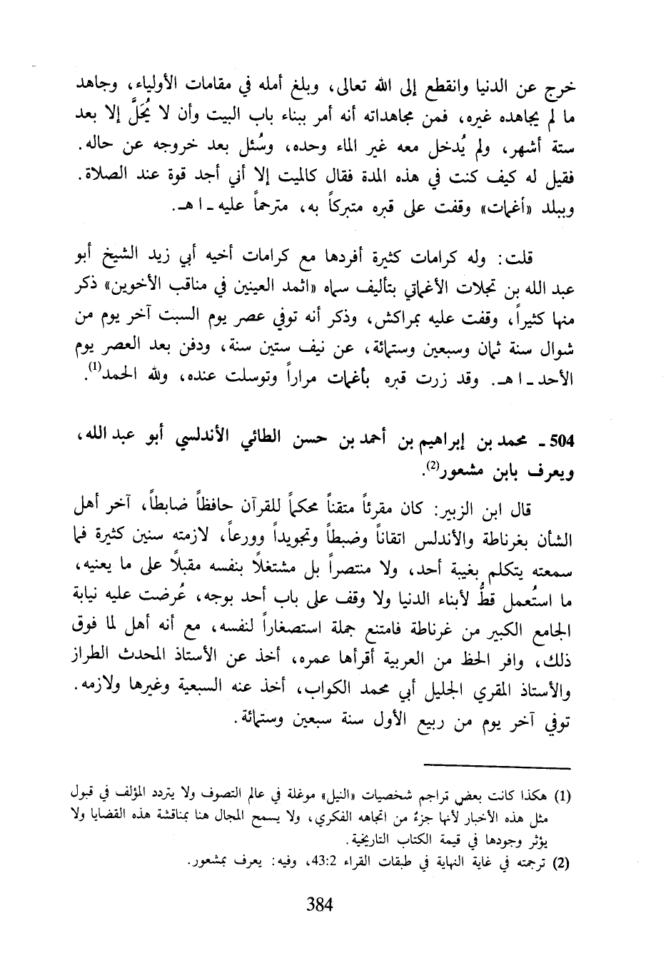 504 - محمد بن إبراهيم بن أحمد بن حسن الطائي الأندلسي أبو عبد اللَّه، ويعرف بابن مشعور (¬2).