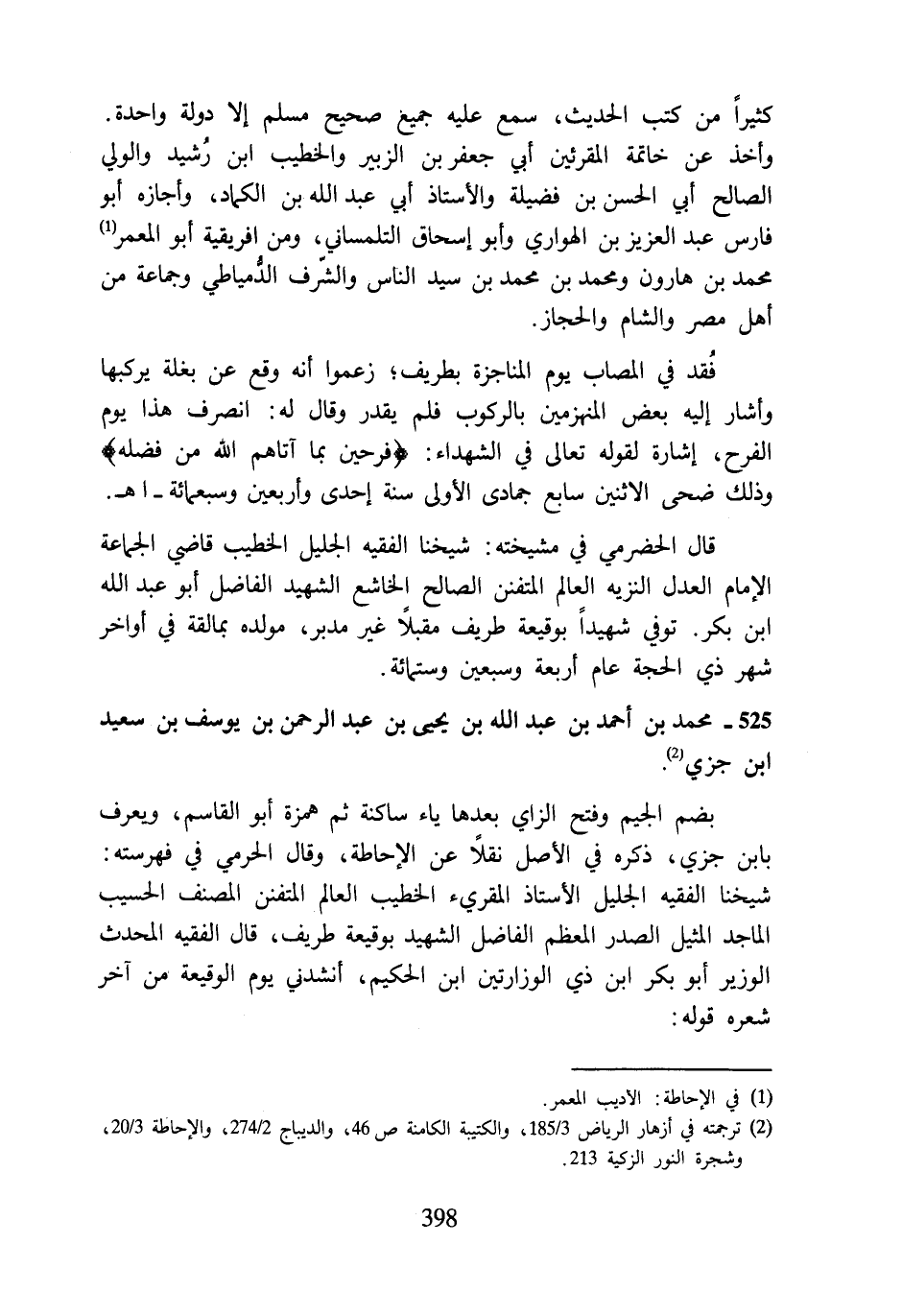 525 - محمد بن أحمد بن عبد اللَّه بن يحيى بن عبد الرحمن بن يوسف بن سعيد ابن جزي (¬2).