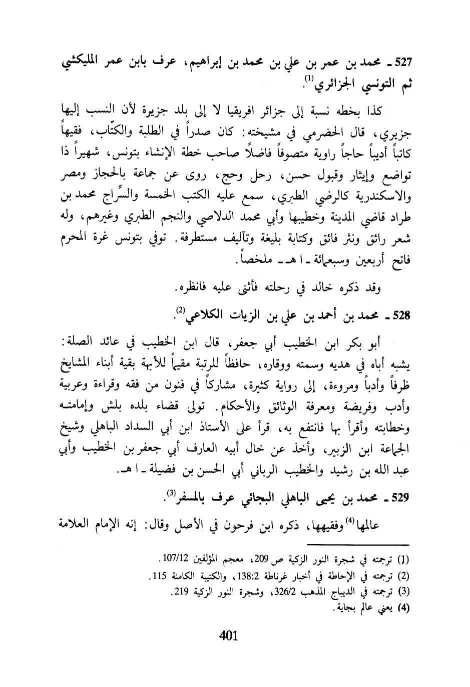 527 - محمد بن عمر بن علي بن محمد بن إبراهيم، عرف بابن عمر المليكشي ثم التونسي الجزائري (¬1).