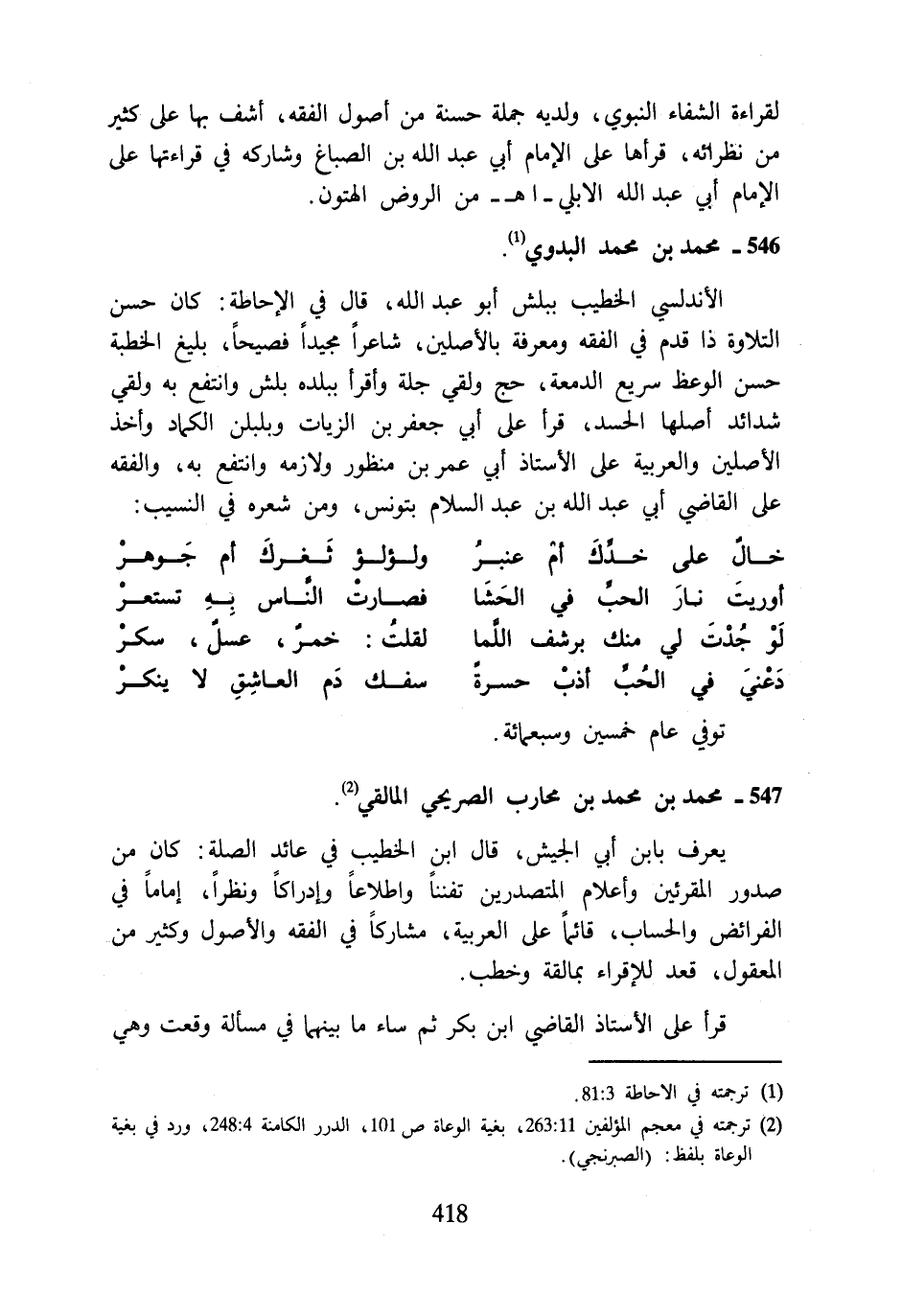 (¬2) ترجمته في معجم المؤلفين 11: 263، بغية الوعاة ص 101، الدرر الكامنة 4: 248، ورد في بغية الوعاة بلفظ: (الصبرنجي).