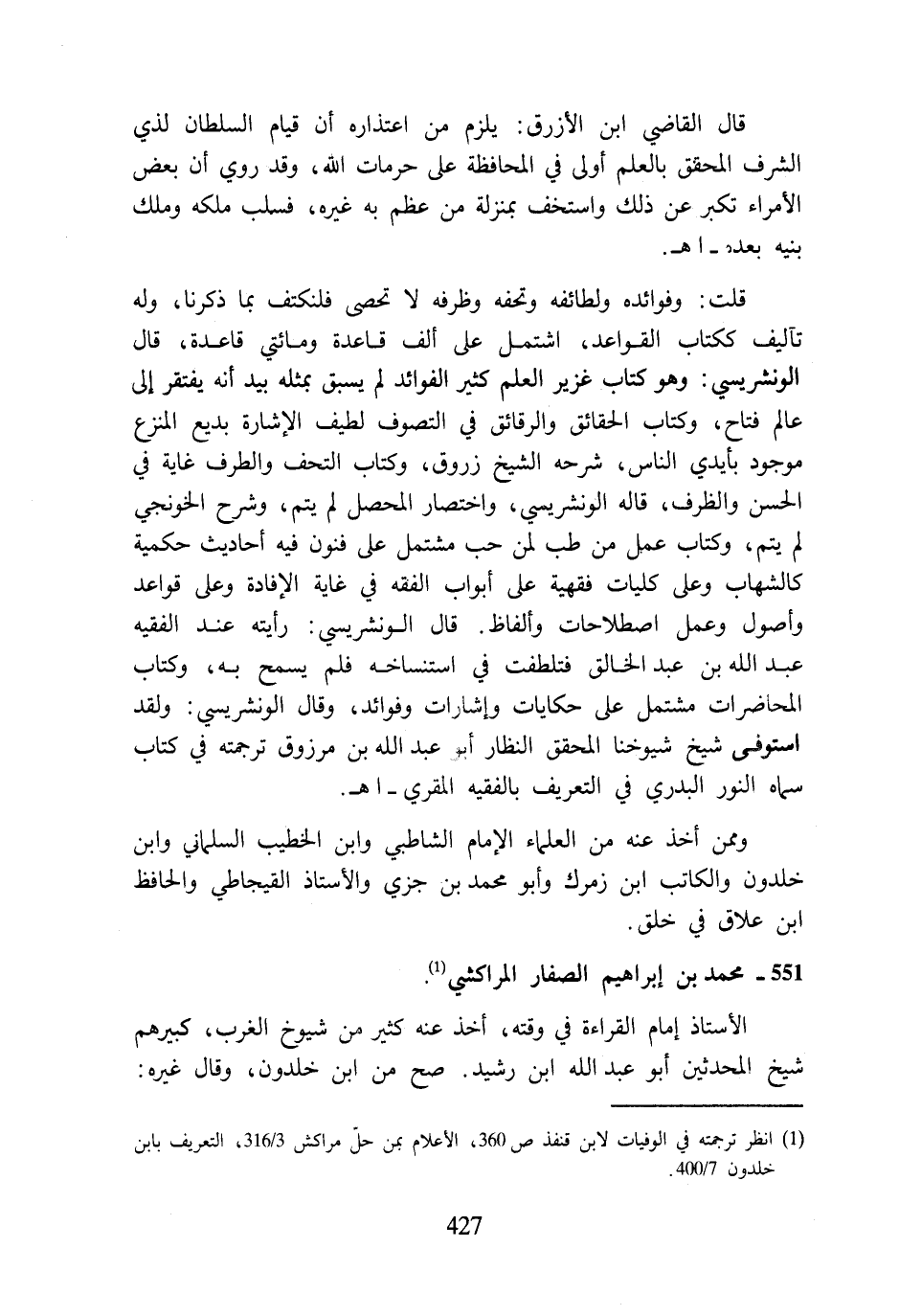 (¬1) انظر ترجمته في الوفيات لابن قنفذ ص 360، الأعلام بمن حلّ مراكش 3/ 316، التعريف بابن خلدون 7/ 400.