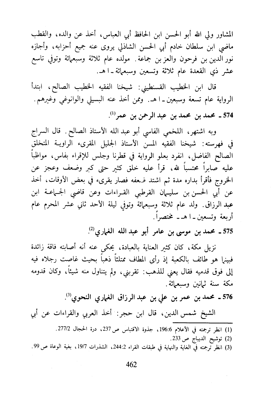 576 - محمد بن عمر بن علي بن عبد الرزاق الغماري النحوي (¬3).