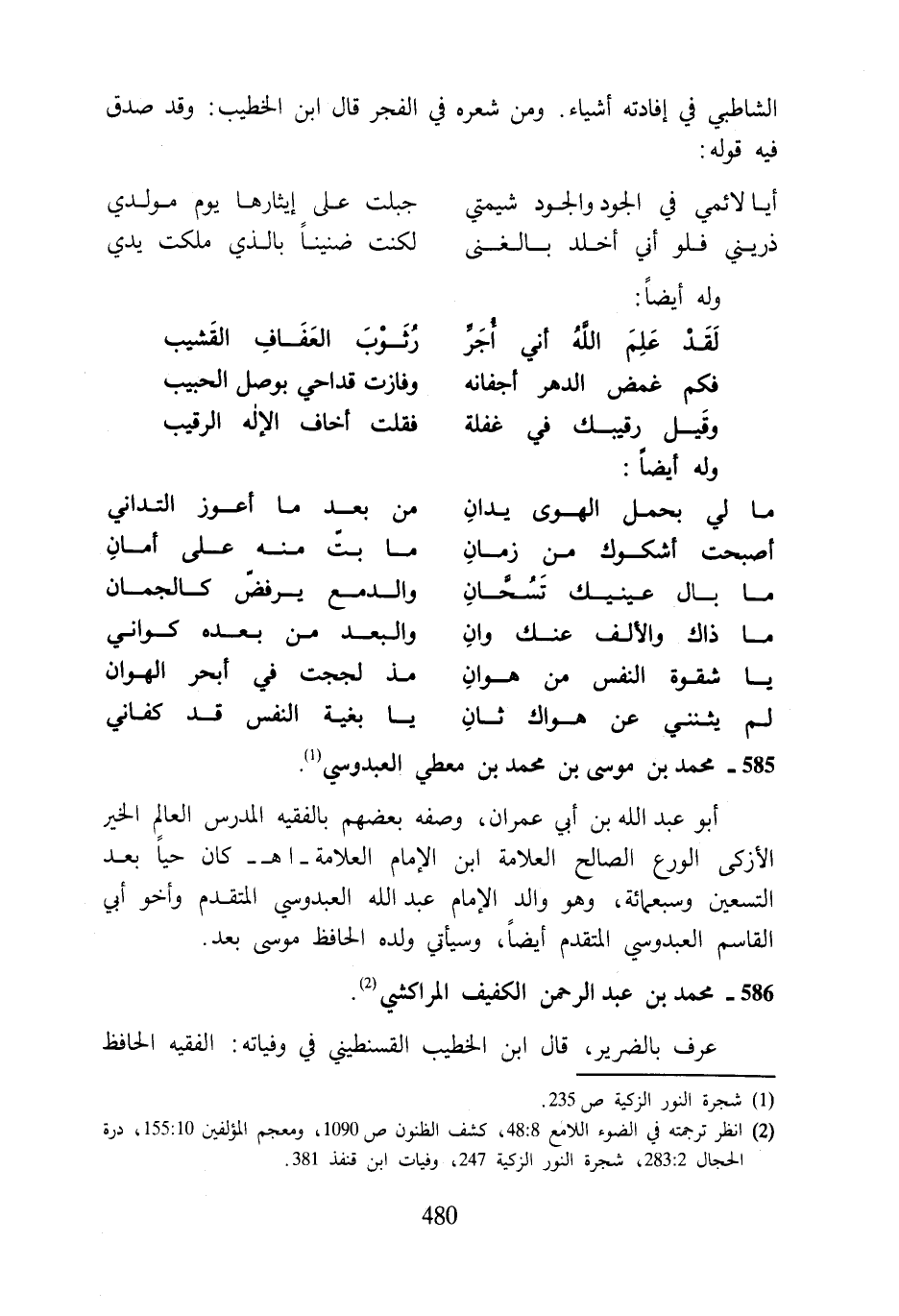 الشاطبي في إفادته أشياء. ومن شعره في الفجر قال ابن الخطيب: وقد صدق فيه قوله: