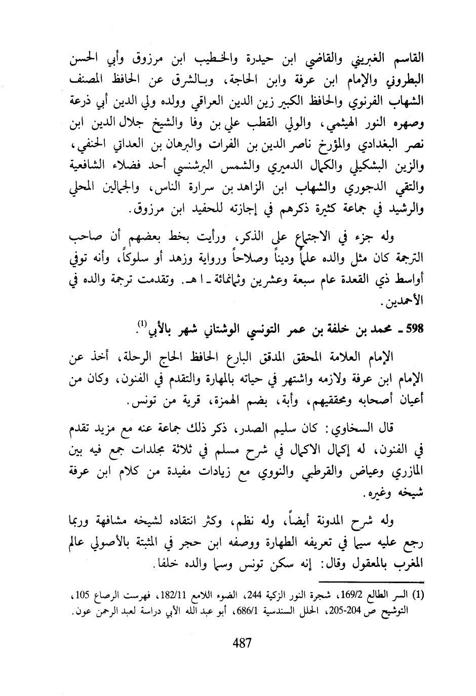 598 - محمد بن خلفة بن عمر التونسي الوشتاني شهر بالأبي (¬1).